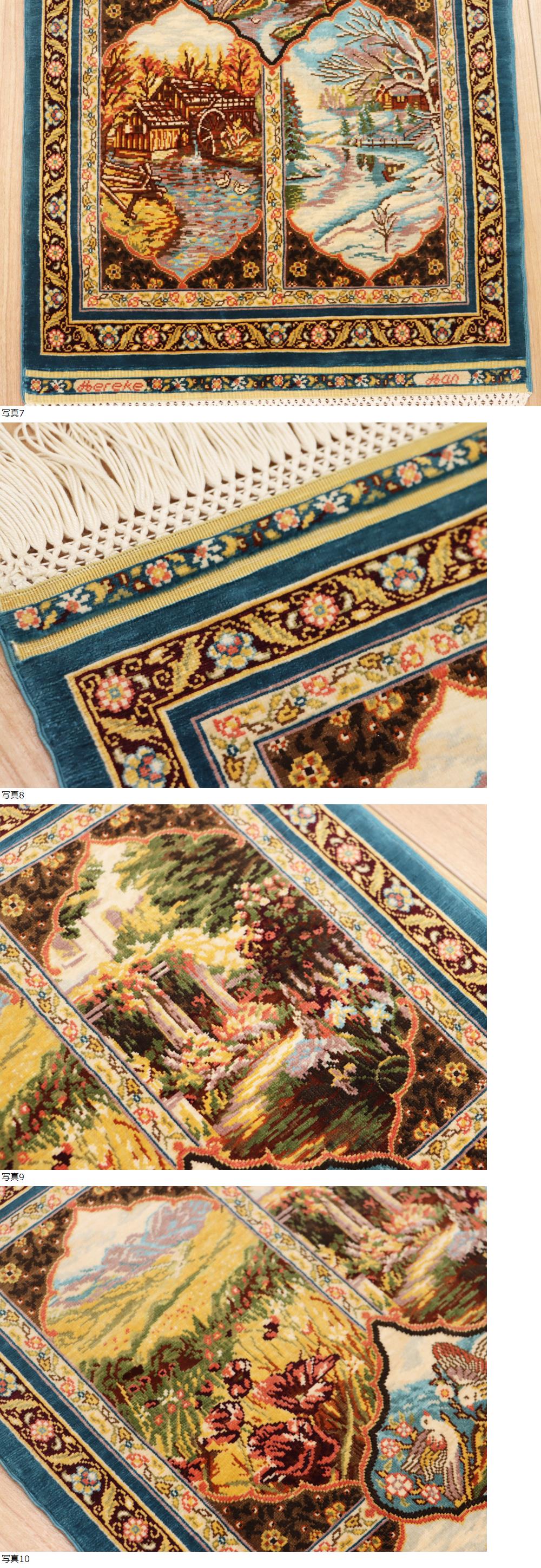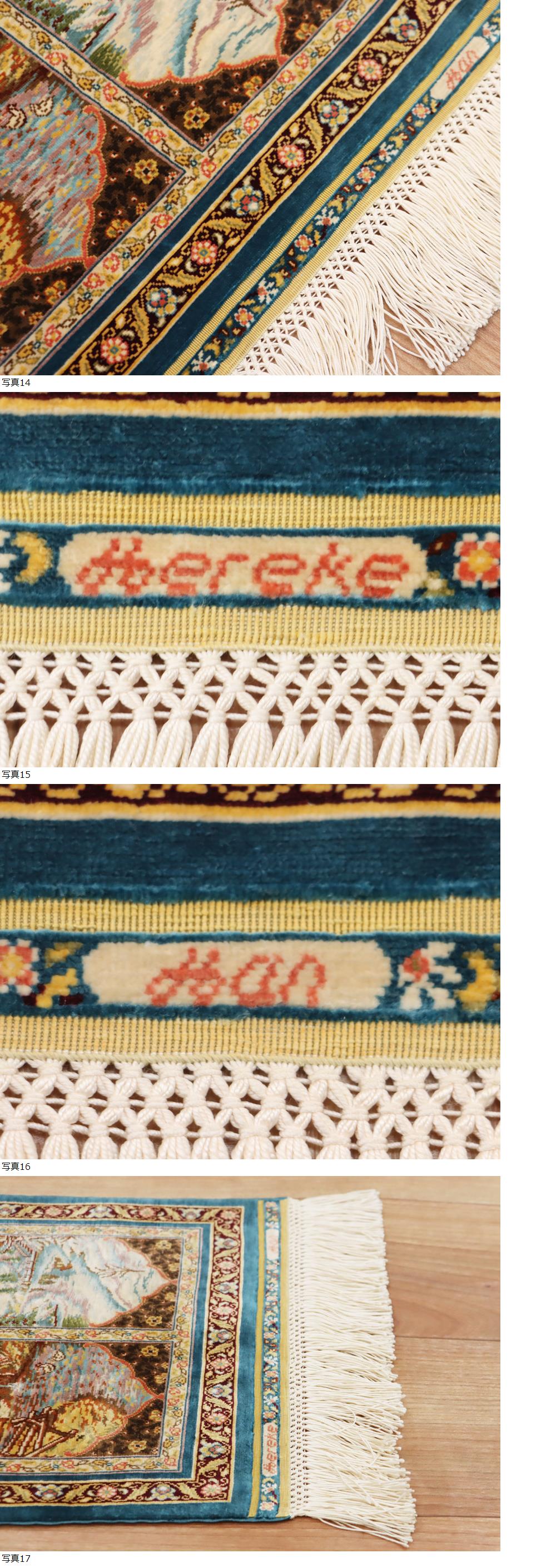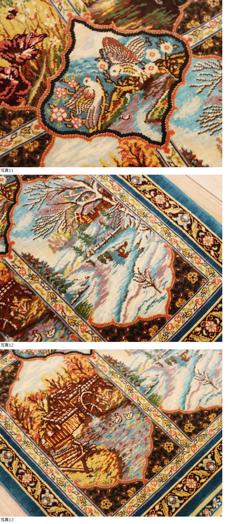 魁◆超最高峰最上級傑作品 購入価格225万円以上 ヘレケ産 総シルク絨毯 手織り彩糸使用 51×31㎝ 169万ノット以上 風景紋王宮絨毯 收藏