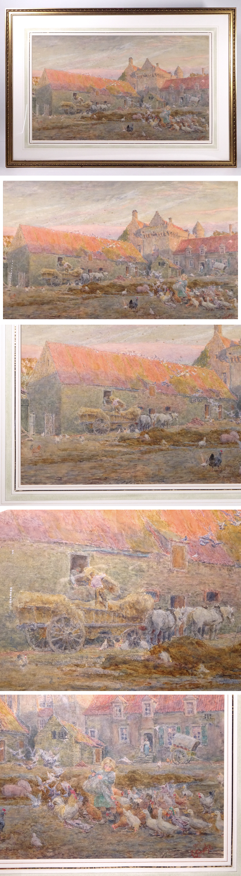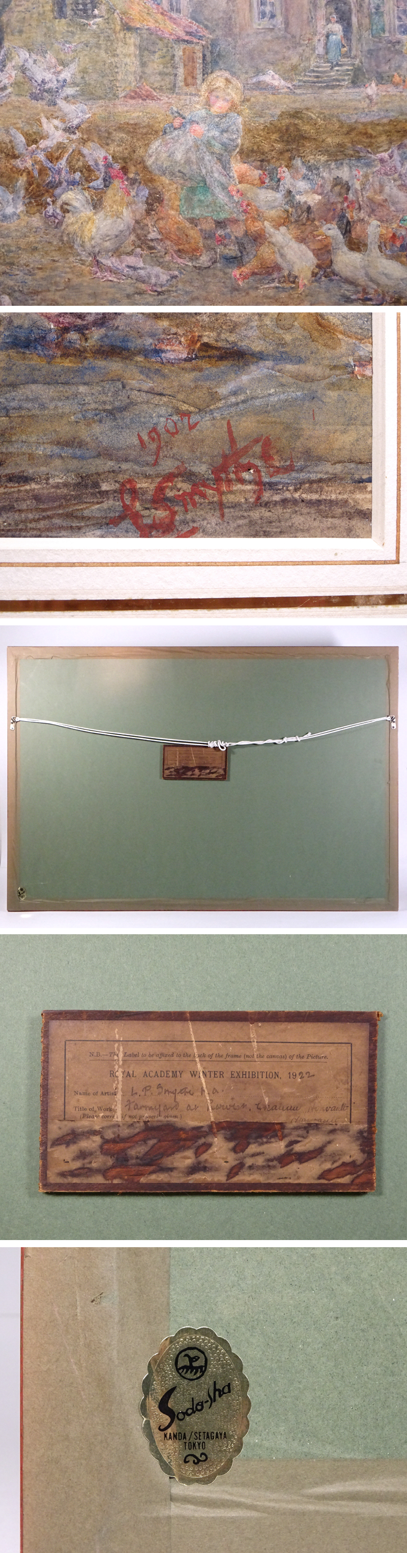 慶應◆イギリス人画家【L.P.Smythe】真筆 水彩画『オンヴォー城の農場』額装 ロイヤル・アカデミー冬期展覧会(1922年)出展木札付 收藏