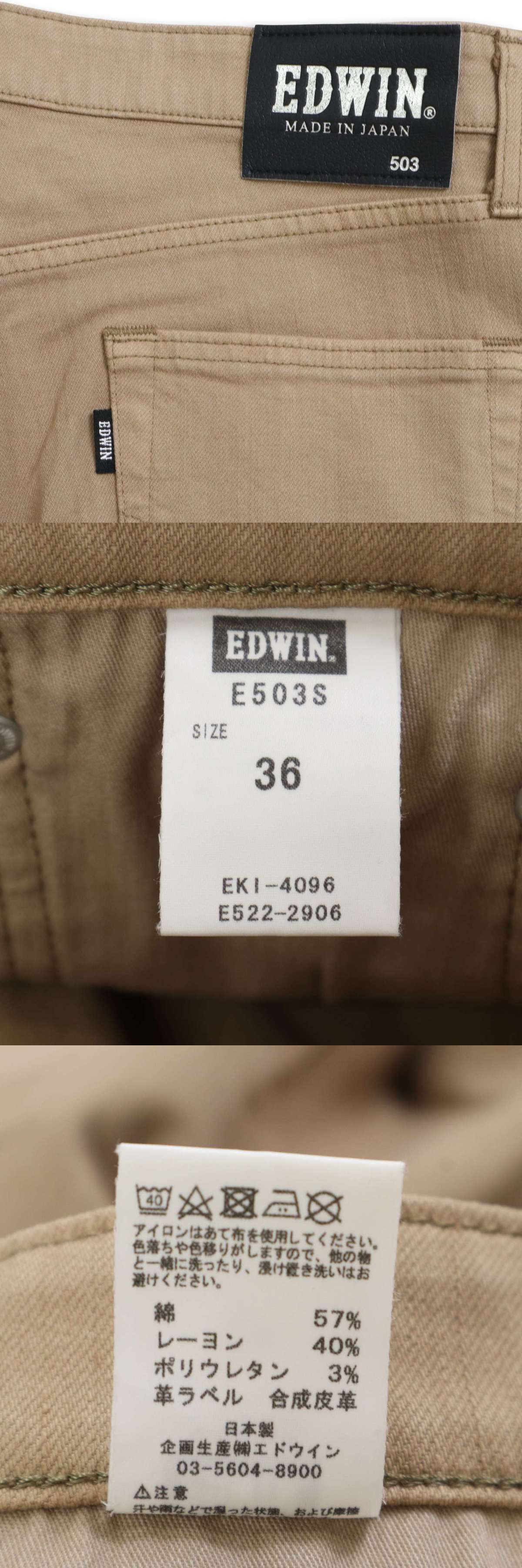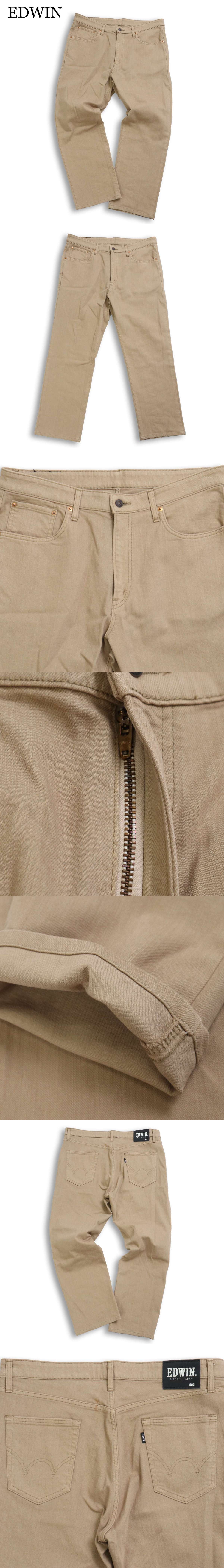 EDWIN エドウィン E503S ストレッチ レギュラー ナロー デニム パンツ ジーンズ Sz.36 メンズ ベージュ 日本製 大きいサイズ 收藏
