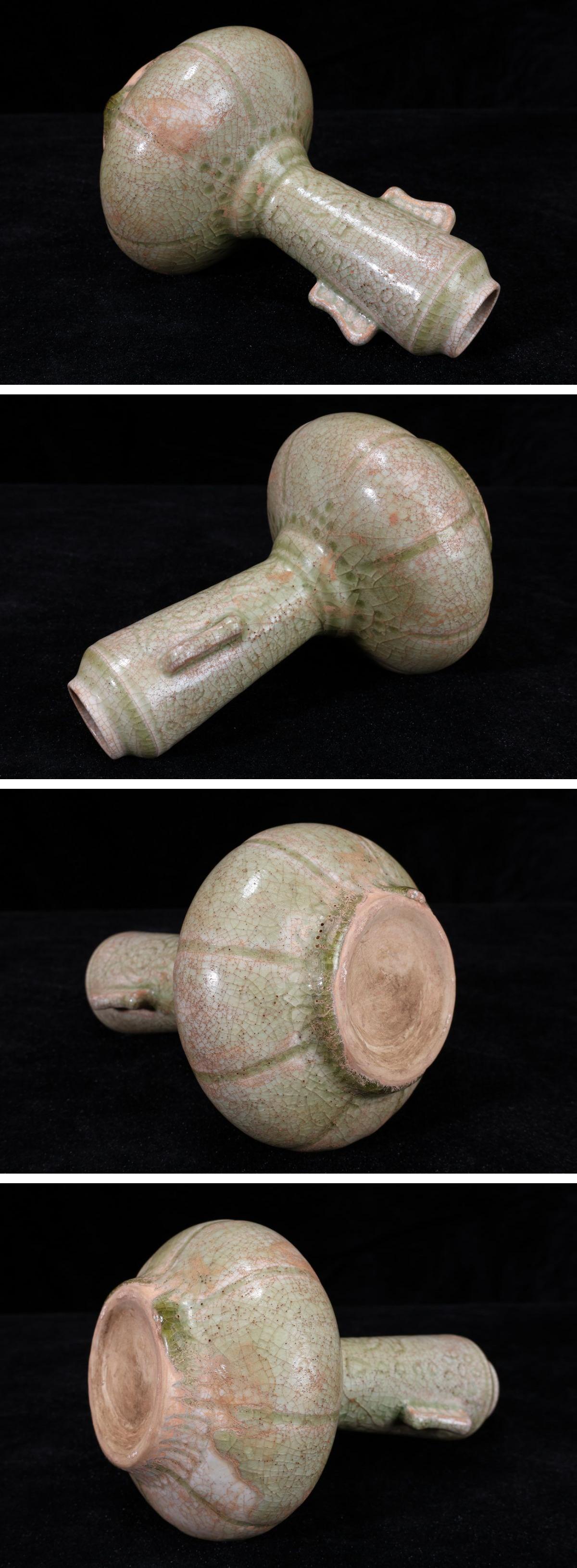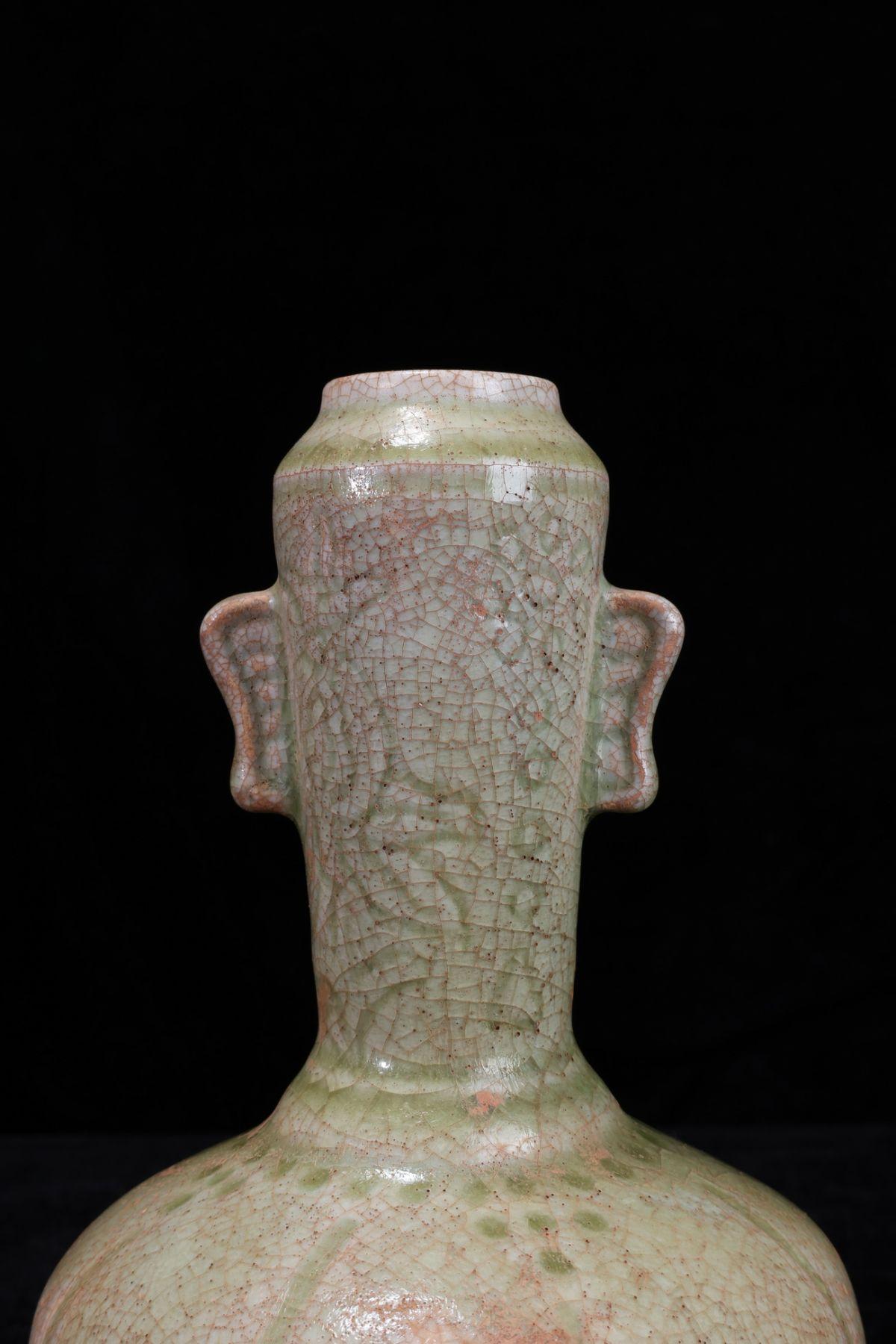 【珍品堂】1円から AB20E-D 中国 李朝 哥釉 陶器 冰裂紋 雙耳 花瓶 高17㎝ 飾壺 木箱 花器 花入 陶芸 華道具 工芸品 鑑賞品 時代物 骨董品 收藏