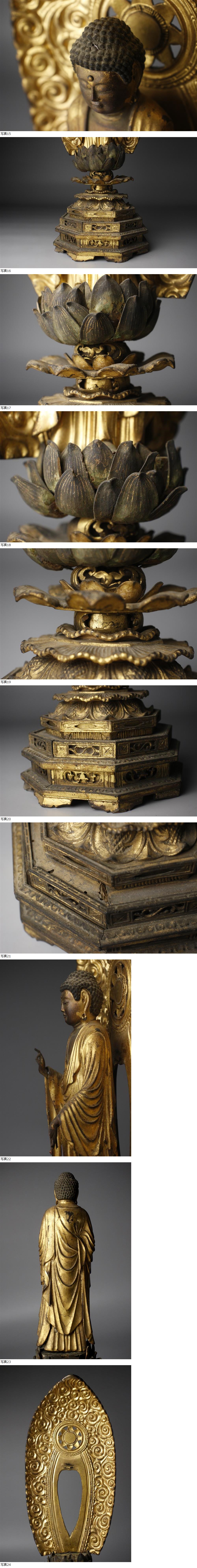 26021731* * * 商品詳細 * * * ここでしか出逢うことのできない唯一の美をご紹介させて頂きます。 神々しい金色の輝きに包まれた阿弥陀如来像のご紹介です。 顔立ちは端正で佇まいは優雅、指先まで繊細に造形されておりその姿からは大きな慈悲が感じられます。 僅かに除く玉眼の瞳は力強く、御仏の神秘性がひしひしと伝わってきます。 経年を経た肌地からもその魅力が味わえる素晴らしい逸品です。 この機会に是非お求めください。 ■サイズ/横14cm×高48cm×奥行12㎝ ■状態/経年による傷み、スレ、キズ、割れ、欠け、腐食、剥げ、直し、パーツ欠損がございます。 台座の連結部分が脆くなっておりぐらつきがあります。 ※写真にてご確認、ご了承の上ご入札下さい。 * * * 支払詳細 * * * !かんたん決済 * * * 発送詳細 * * * 入金確認後3営業日以内に発送致します。 ※直接引き取りも可能です。 60~160サイズにつきましては 佐川急便、ゆうパックのどちらかで発送いたします。 ゆうパック発送の場合、弊社の発送日から追跡サービスに問合せ番号が反映されるまで 約1日ほどお時間がかかりますのでご了承下さい。 * * * 注意事項 * * * 運送中の破損があった場合は速やかに当社までご連絡下さい。 保険を利用するのに受取連絡後に運送会社による現場での破損状況確認が必要となります。 勝手に返送されますと保険の適用外となりますのでご注意ください。 * * * * * * お問い合わせ:082-236-8669 |