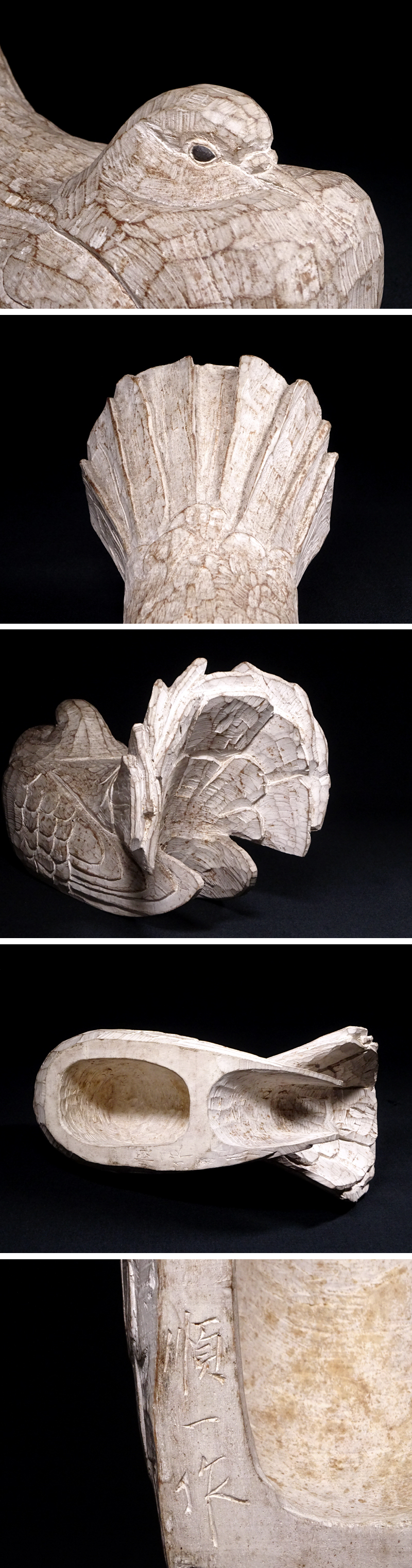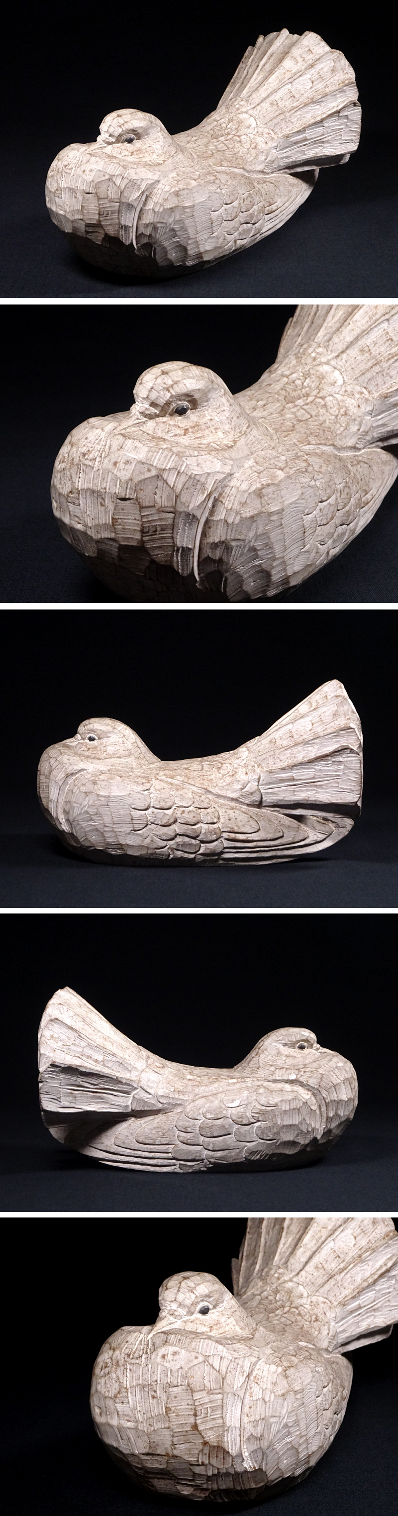 慶應◆彫刻家【安西順一】作 木彫彩色 鳩 置物 オブジェ 師:関野聖雲 HIT 收藏