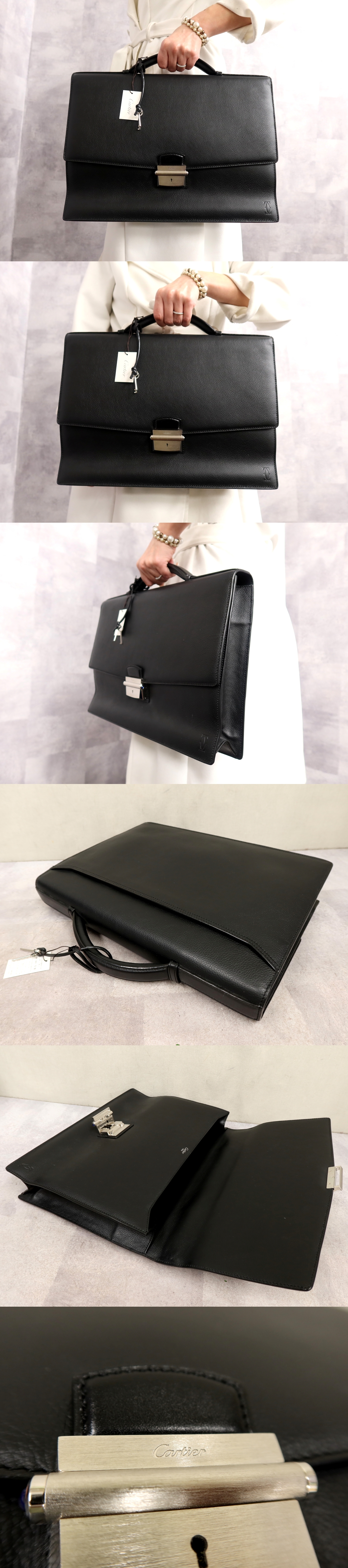 ●超美品●Cartier カルティエ●パシャ●カボション●カーフ レザー 本革●ハンド ビジネス バッグ●黒●シルバー金具●A4 かばん●Js65453 收藏