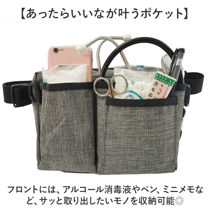 | 商品説明 | ・・【お仕事用ポーチはこれで決まり☆!】 ・小物を整理整頓できる使いやすいポケットがたくさん!ウェストポーチ 作業用が登場。 ・【あったらいいなが叶うポケット】 ・フロントには、アルコール消毒液やペン、ミニメモなど、サッと取り出したいモノを収納可能◎ ・【カラビナやDカンを搭載】 ・鍵や懐中時計などをぶら下げられる仕様。ポケット以外にも収納ができる優れモノ! ・【ユニセックス、エイジレスOK】 ・長さ調節可能なので、男女関係なく身体にフィットできる!両手が自由に使えるのも魅力◎ ・【たくさん入るマチつき仕様】 ・見た目以上にしっかり入る収納力。約4.5cmのマチつきで、必要な物をばっちり持ち歩き! ・【幅広いシーンで使えるアイテム】 ・医療や建築現場などのお仕事のシーン、DIYやガーデニングなどの趣味タイムまで大活躍! ・【ポケット仕様】 ・フロント部分:オープンポケット×3、ペンホルダー×2 ・背面:面ファスナーポケット×1 |