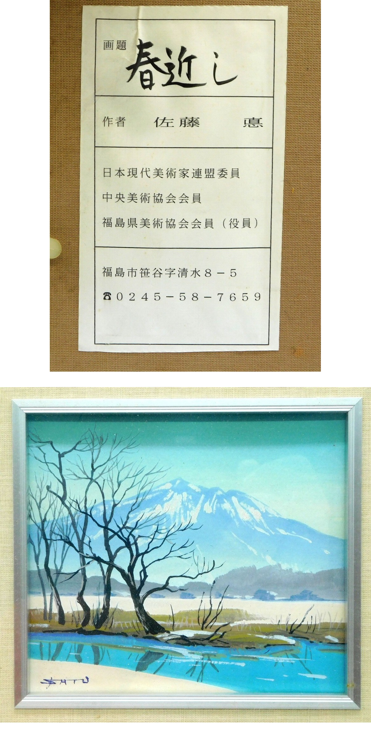 【真作】水彩風景画飾額 佐藤悳 画題:春近し 收藏