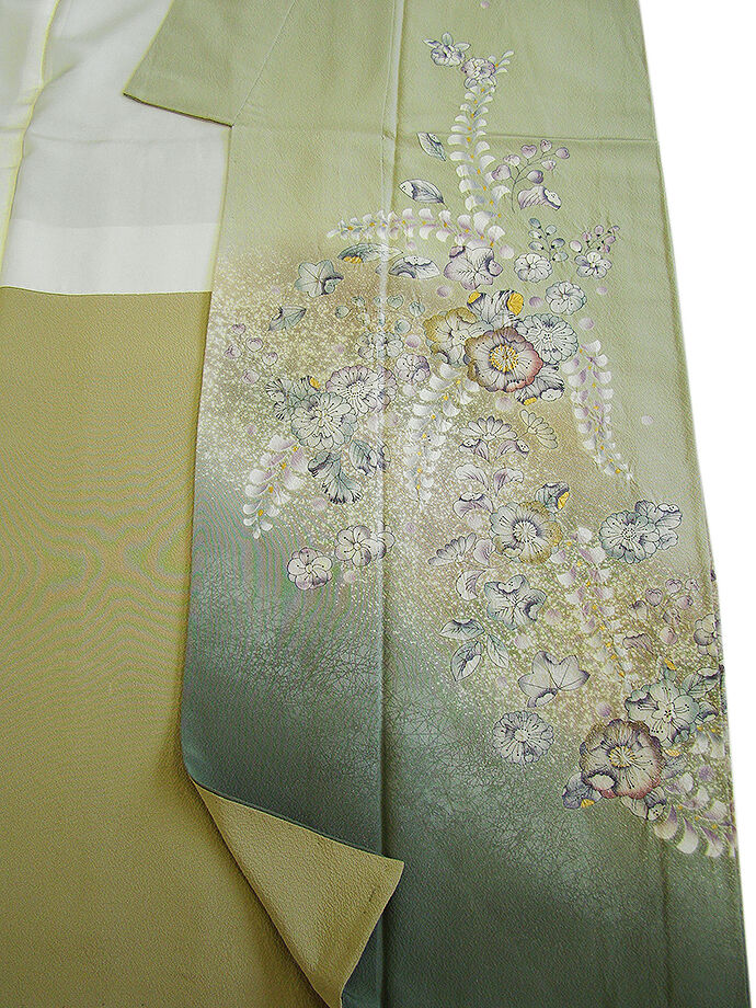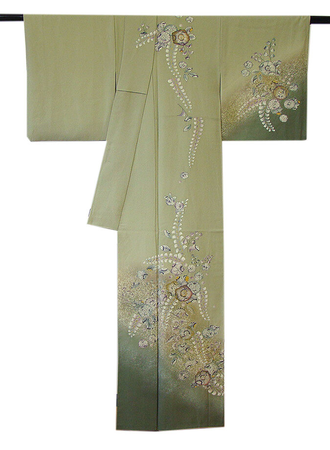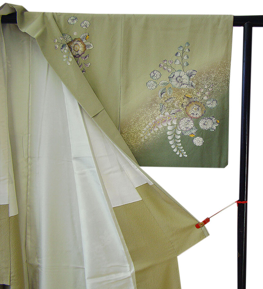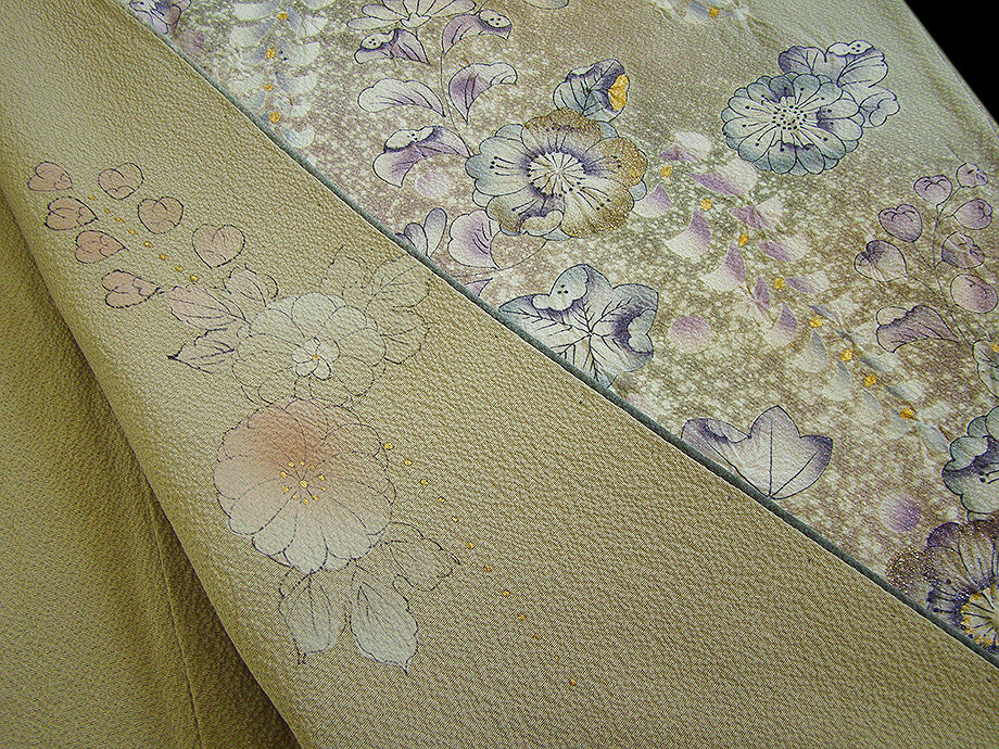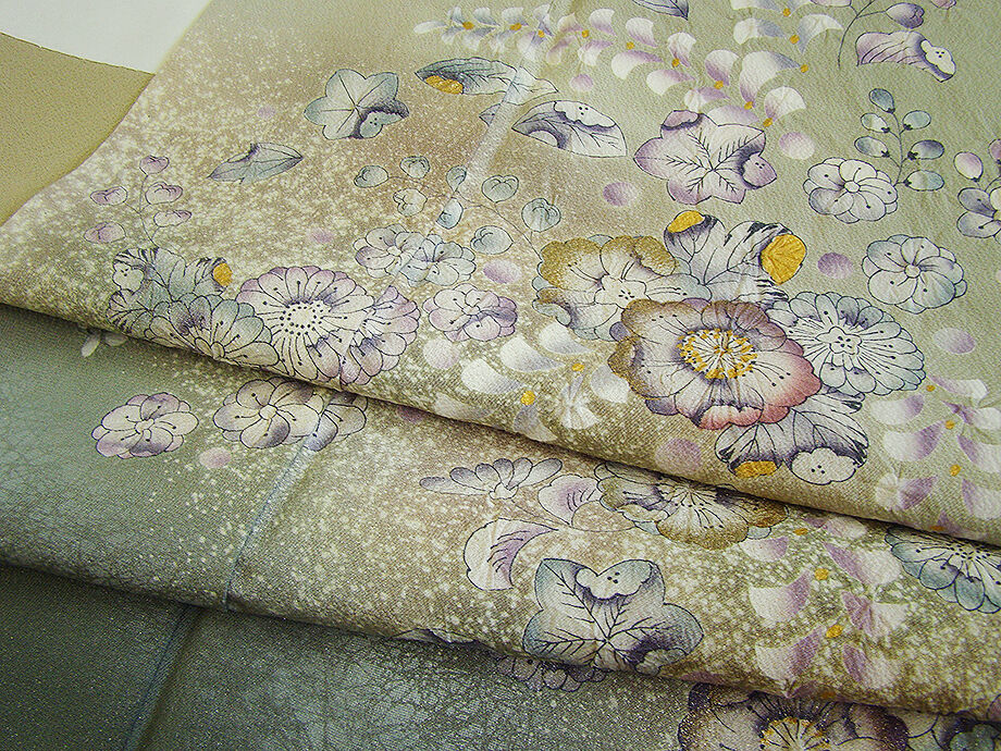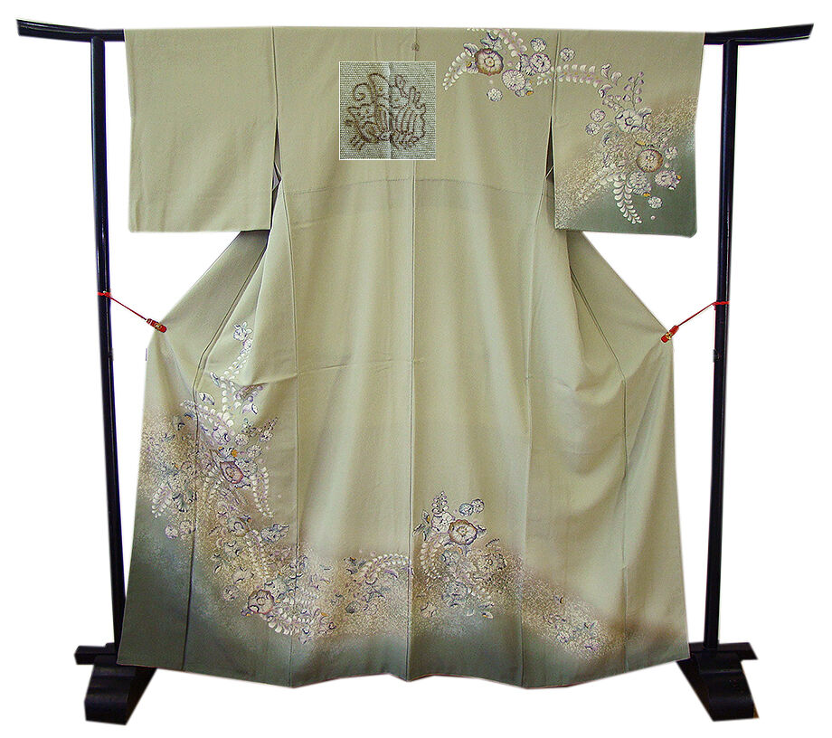 | 商品説明 | こちらのお品は「袷」でございますので、10月~5月までお召頂ければと思います。 とてもしなやかなさらりとして柔らかな手触りの着心地良い重めの極上ちりめん地の生地、 利休白茶色地に裾にかけて山鳩色のぼかし染に煌く銀ラメ入り、 絞って染めての匠の手技を駆使した辻が花の染柄に金彩加工仕立て、 八掛は桑染色に柄入り(正絹)、背に「揚羽蝶」の刺繍紋1ヶ、 幅広い年代の方にお召頂けます。 |