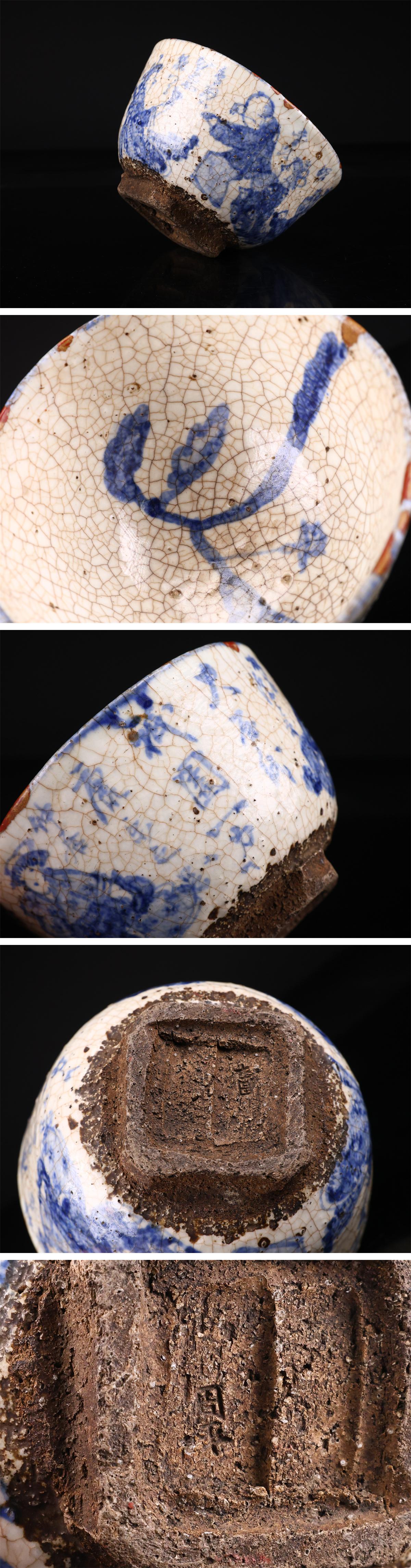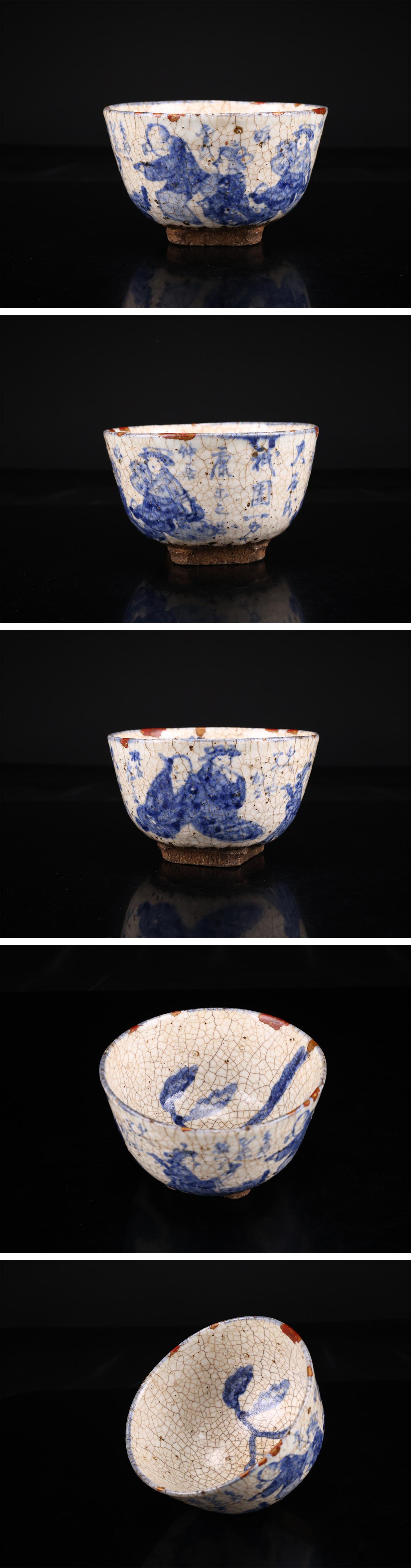 【吉】CQ640 江戸時代 【初代 尾形周平】作 染付 人物紋 鉢 高8.5㎝ 径14.5㎝/時代のなおし跡ありs! 收藏