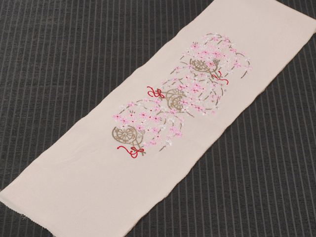 【刺繍】花車文 縮緬 半衿 半襟 TAGJ03026 風楽 |