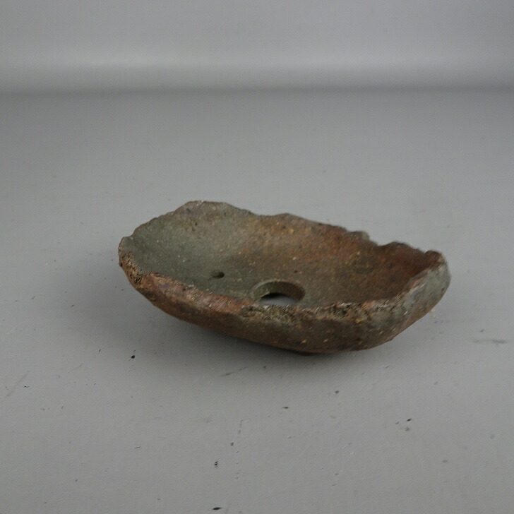 【中古】盆栽鉢 常滑 片 片岡 美津江 小鉢 長辺 約 9.5cm 楕円鉢 泥物 現品 中古鉢 收藏