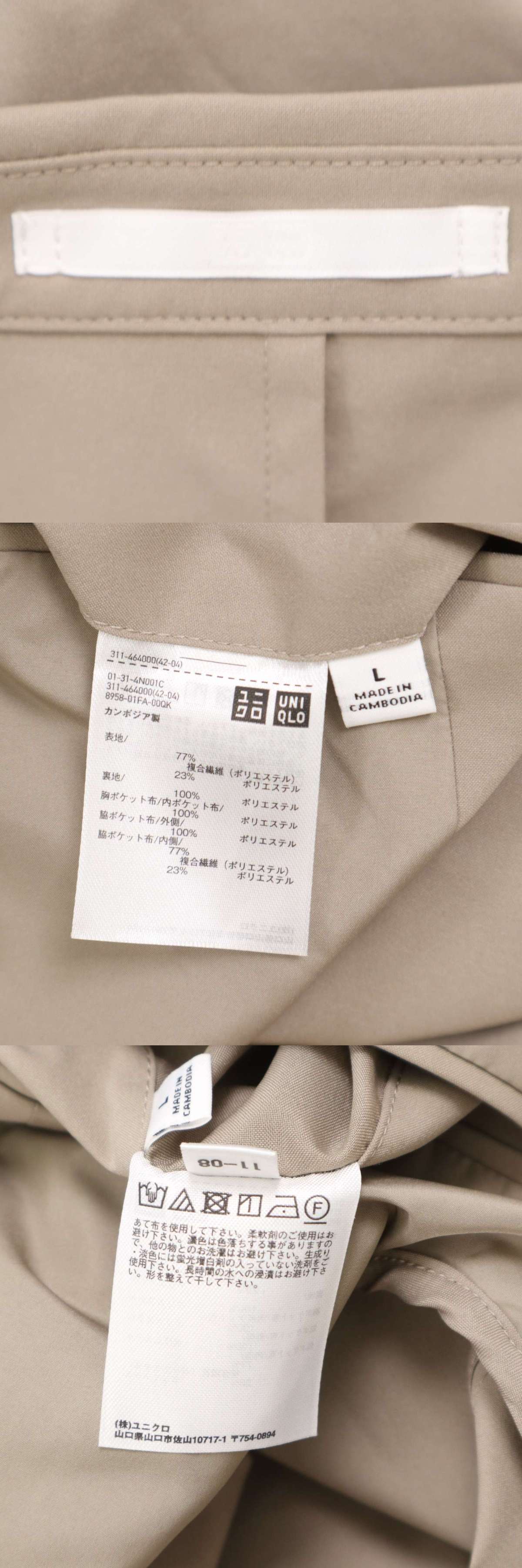 【美品 24AW】UNIQLO ユニクロ 通年 感動ジャケット★ ライト テーラード ジャケット Sz.L メンズ 收藏