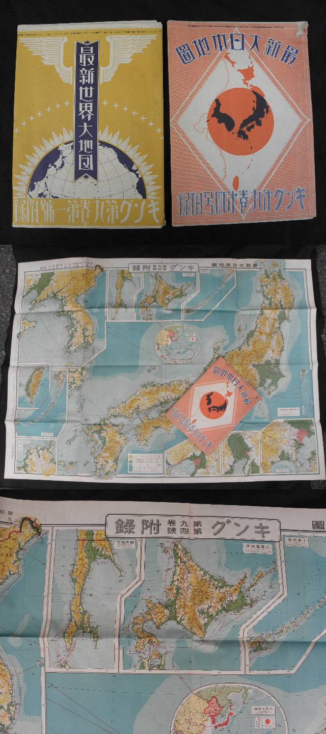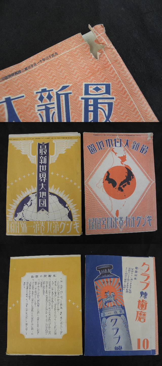 82 戦前 キング付録 大日本地図 世界地図 2枚 まとめて / 地図 古地図 中国 満州 支那 朝鮮 韓国 臺灣 台湾 收藏