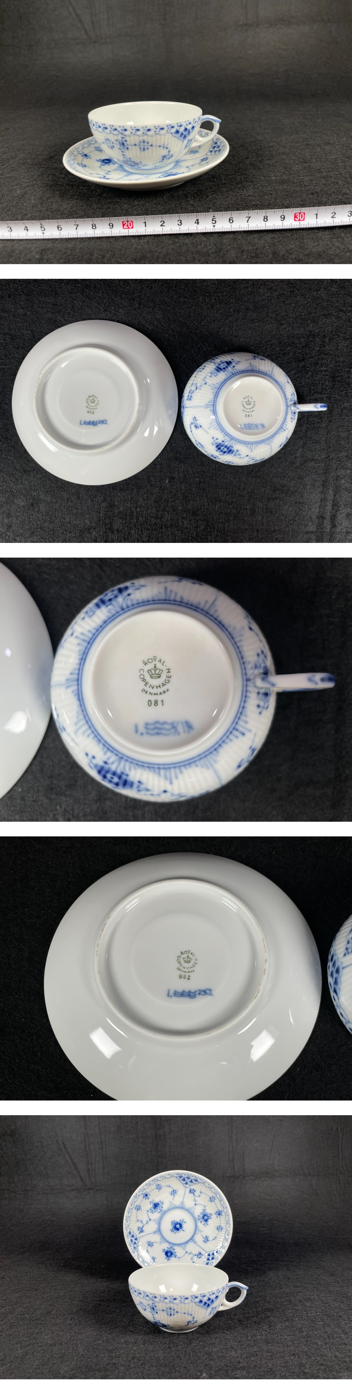 ロイヤルコペンハーゲン (ROYAL COPENHAGEN) ブルーフルーテッド ハーフレース ティーカップ&ソーサー M257 收藏