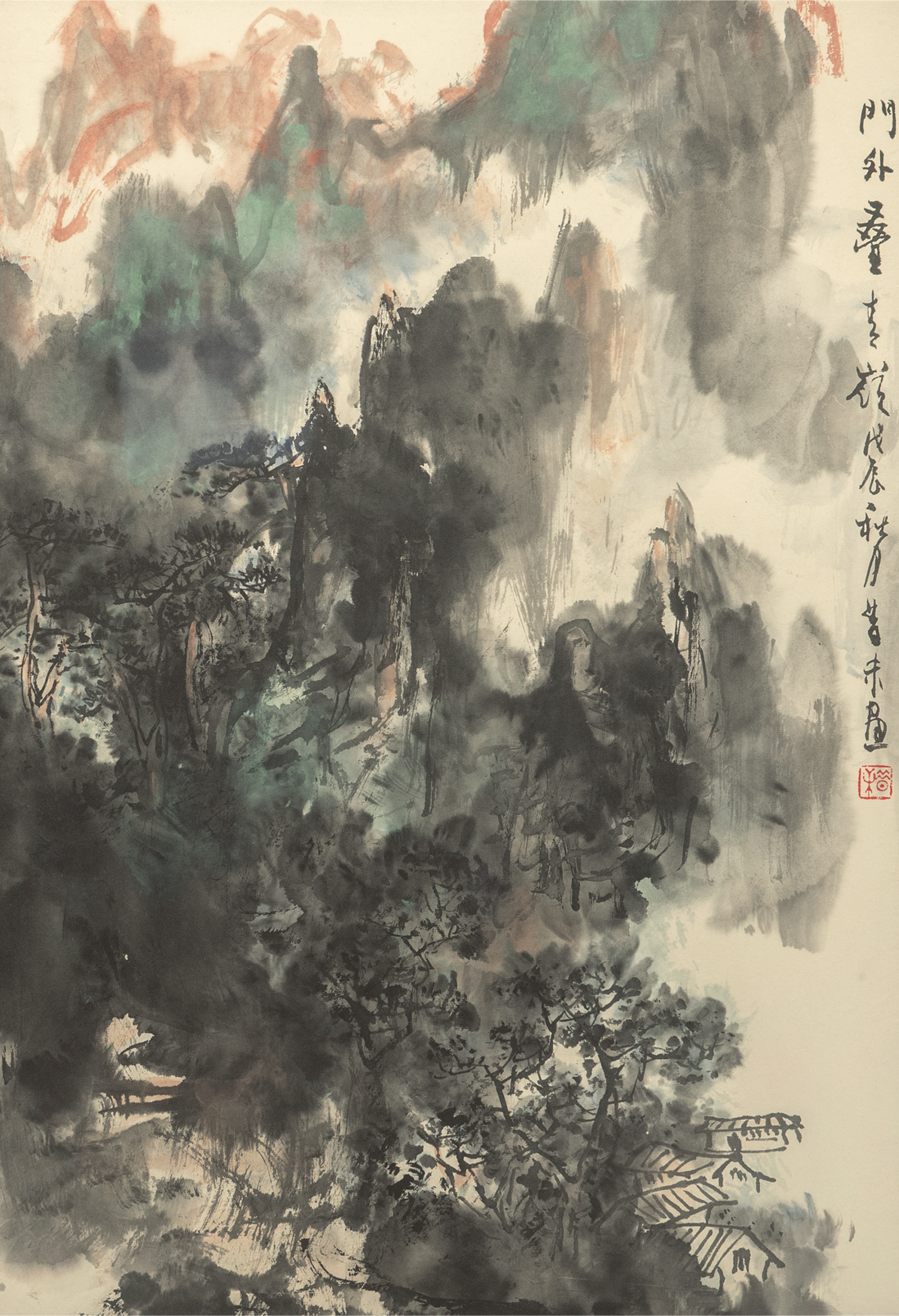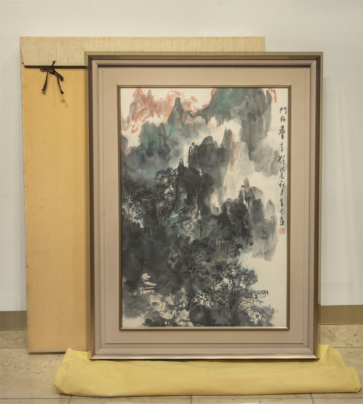 陳昔未 1988年作 山水 額装 真作 陈昔未 中国 絵画 收藏