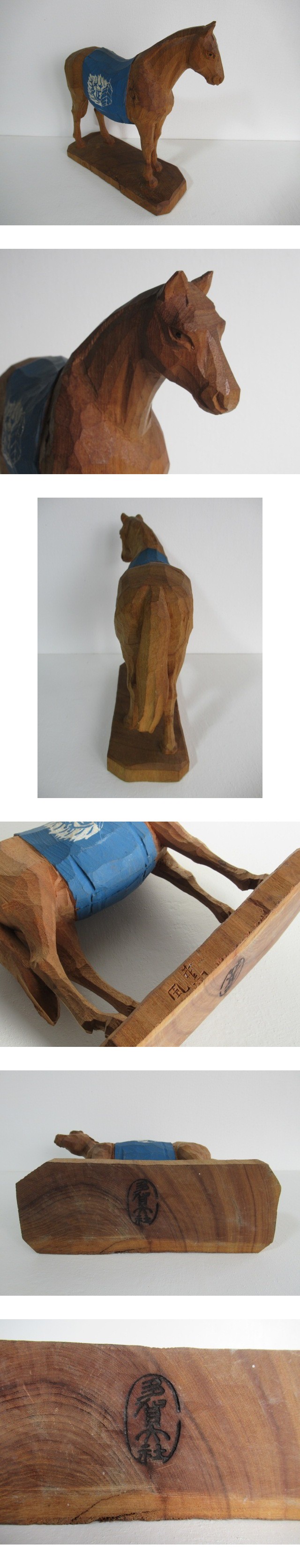 【虫】戦前.一刀彫.木彫り.彫刻(薫風とあり.焼印は多賀大社)/神馬.馬(全高25cm)●郷土玩具.土人形.張子.農民美術.こけし.神社.絵葉書 收藏
