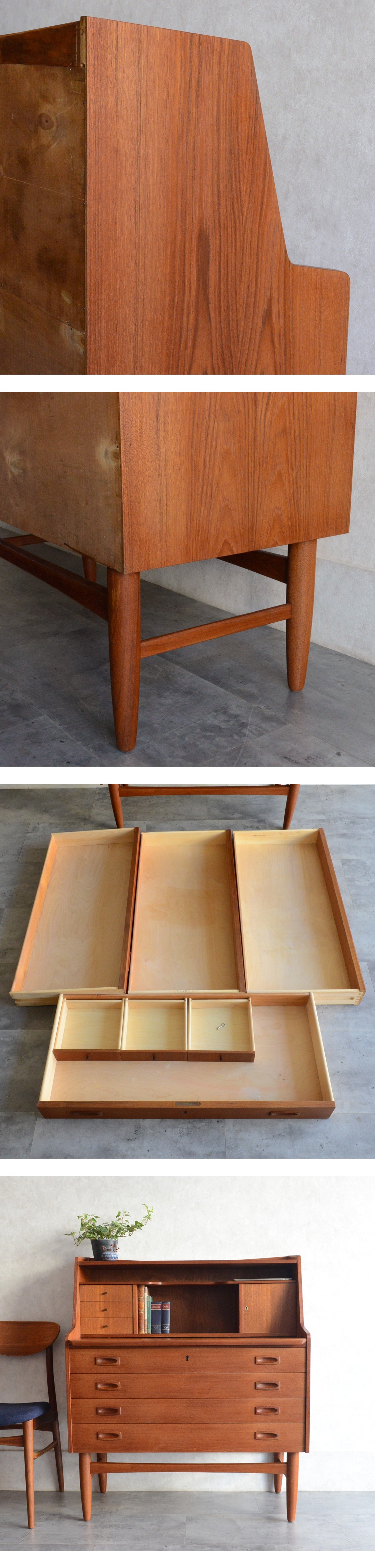 デンマーク 北欧ヴィンテージ チーク ライティングビューロー デスク 北欧家具 書斎机 チェスト 北欧デザイン オイル仕上 パソコンデスク 收藏