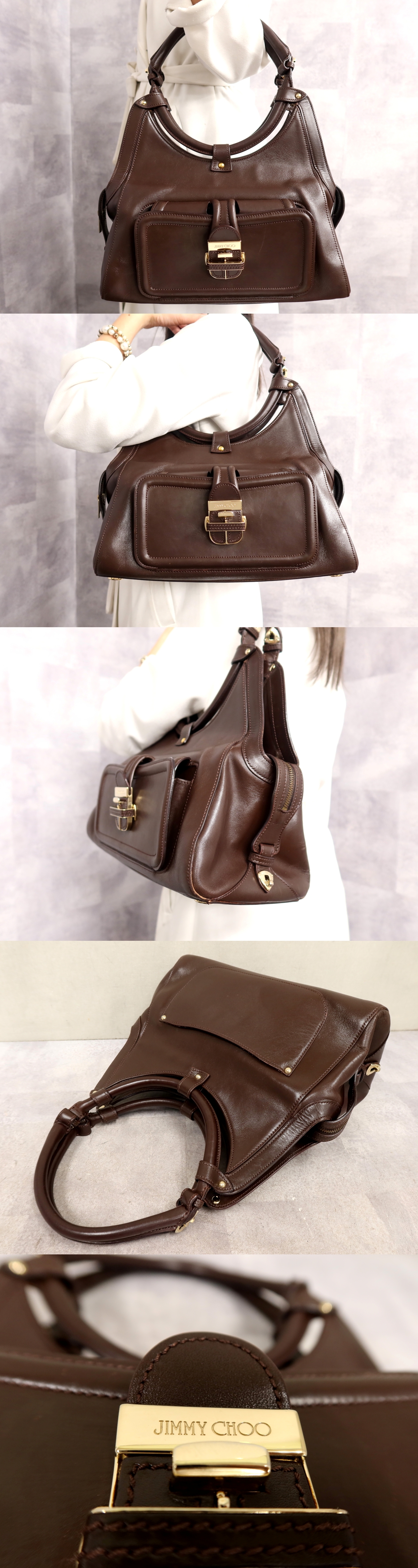 ●超美品●JIMMY CHOO ジミーチュウ●カーフ レザー 本革●ショルダー トート バッグ●ブラウン●ゴールド金具●肩掛け●かばん●Js64404 收藏