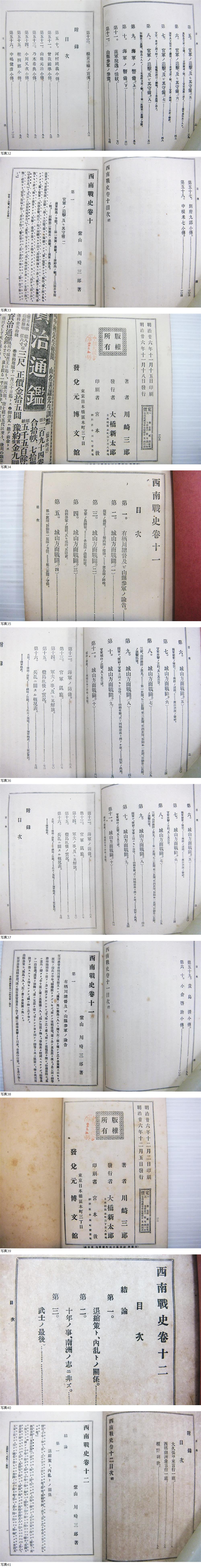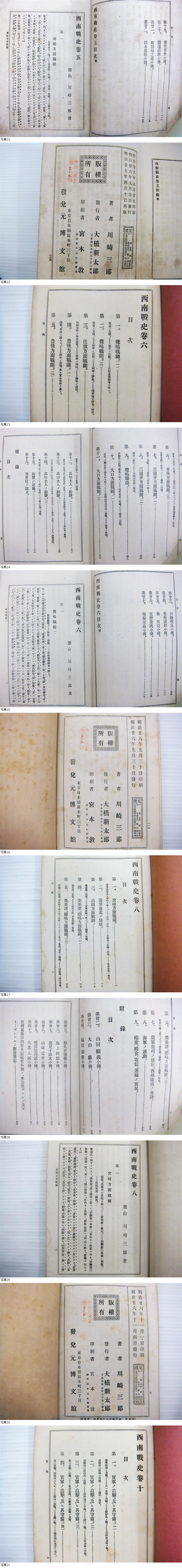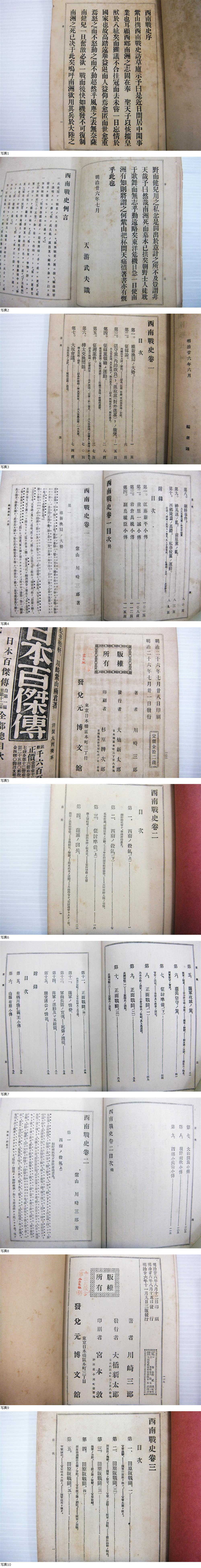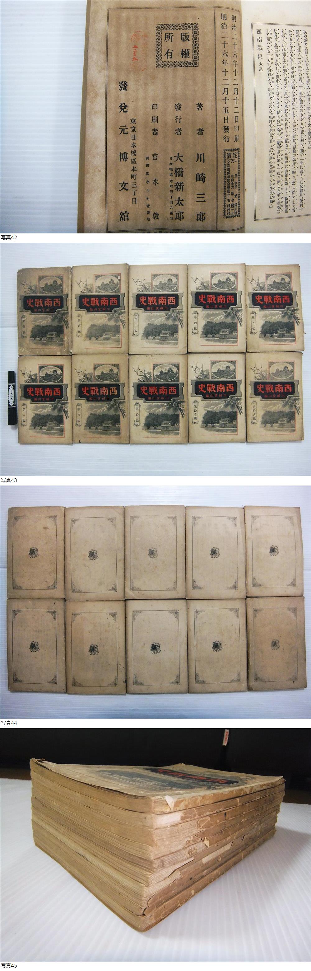 明治 西南戦史 10冊 川崎紫山 博文館 西郷隆盛 西南戦争 樺太交換問題 朝鮮事件 田原坂戦闘 山鹿戦闘 人吉方面戦闘 高鍋方面戦闘 收藏