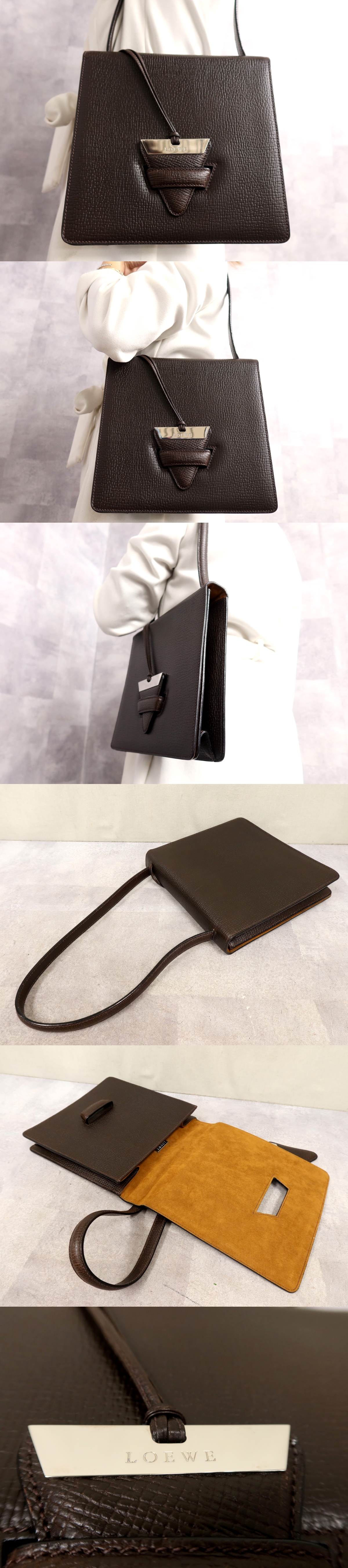 ●超美品●LOEWE ロエベ●バルセロナ●カーフ レザー 本革●ショルダー バッグ●ダークブラウン●シルバー金具●肩掛け●かばん●Js64782 收藏