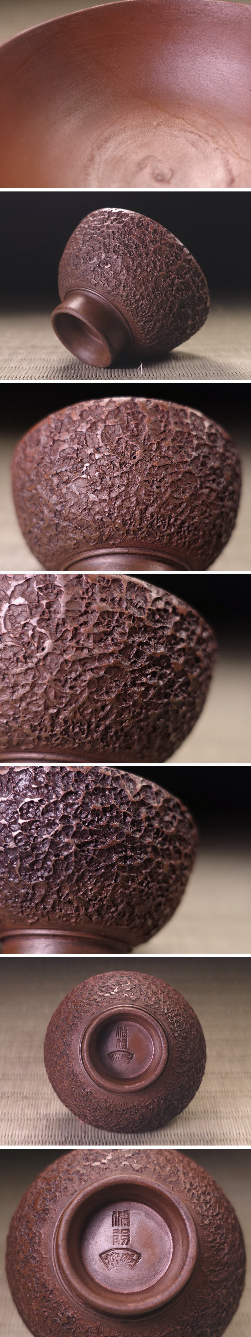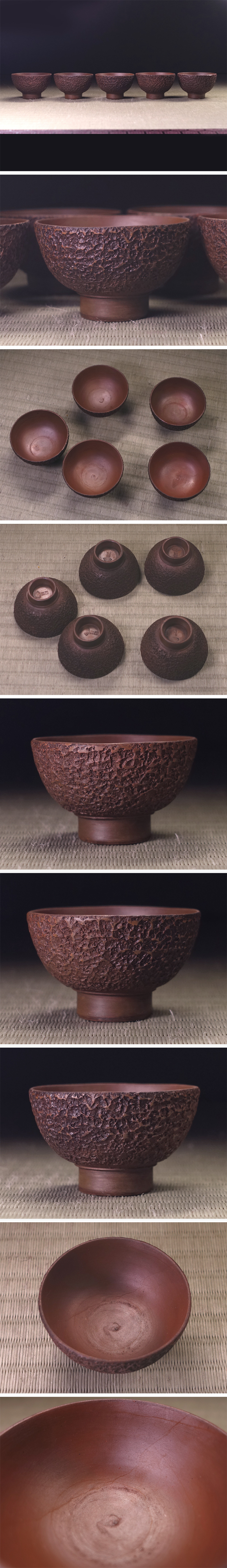 ∇花∇時代煎茶道具 備前柳昭銘 備前松皮肌煎茶碗五客 各陶印あり 收藏