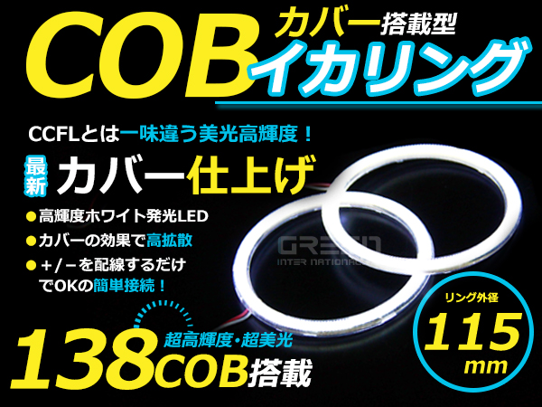 LED増量タイプ! COB イカリング 115mm 138連 2個セット ホワイト LED 電球 丸型 ライト ランプ 交換 ドレスアップ カスタム 收藏