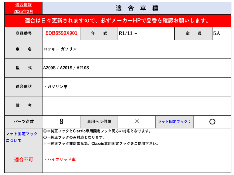 [クラッツィオ]A200S,A201S,A210S ロッキー_ガソリン車(R1/11~)用カスタムフロアマット(ラゲッジ無)[EDB6590X901] 收藏