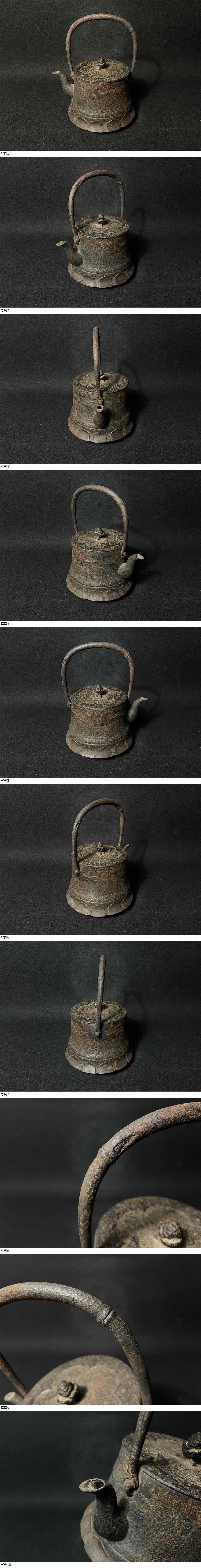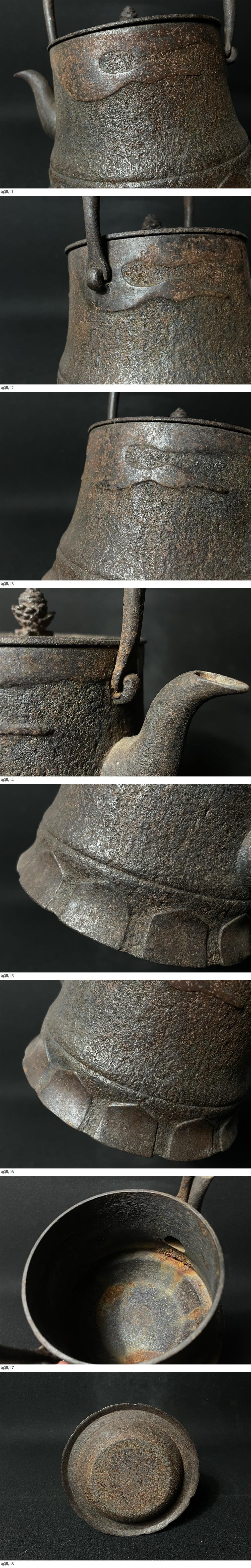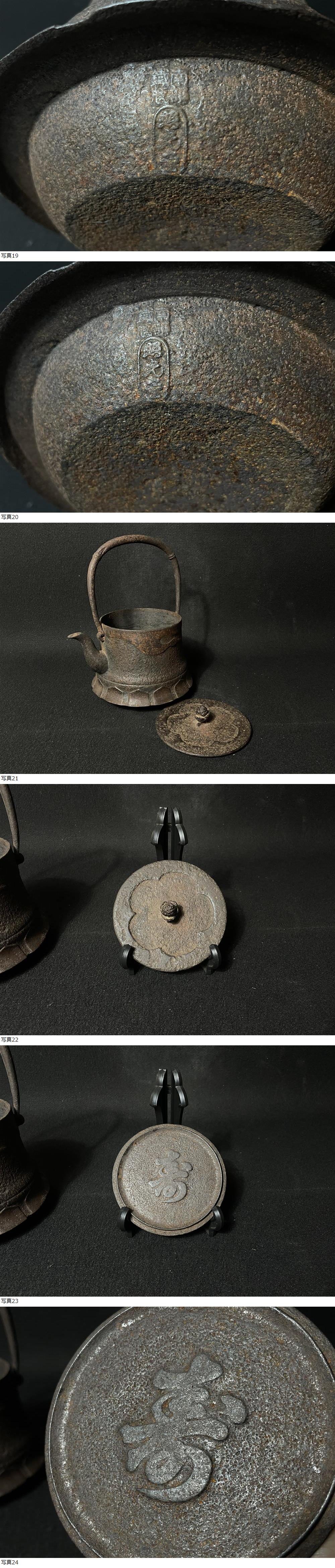 | 南部鉄瓶 照光堂 古い鉄瓶 雲上鶴文 富士型 蓋裏寿字 煎茶道具 茶器 重さ約2079g |