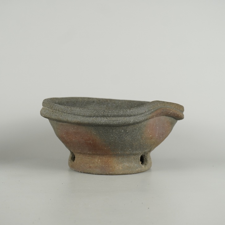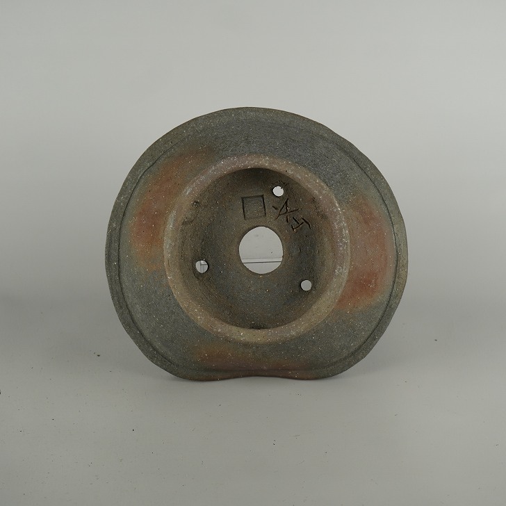 盆栽鉢 文山 越前文山 中型 長辺 約 20.5cm 鯖江園芸 変形 丸鉢 泥物 現品 新品 收藏