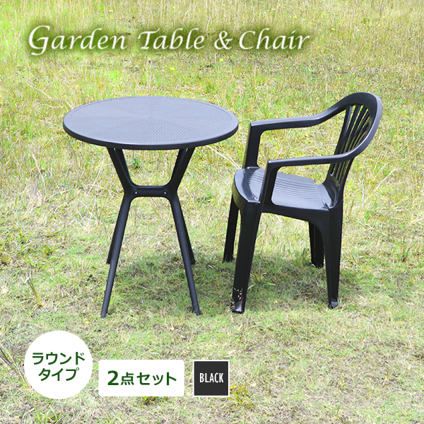 送料無料 プラスチックチェア ガーデンチェア ガーデンテーブル 2点セット UVカット ブラック ラウンドテーブル スタッキング 丸型 1脚 收藏