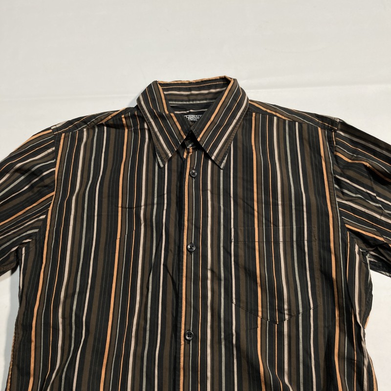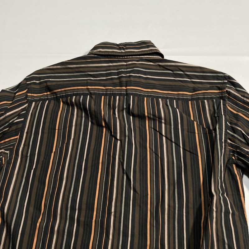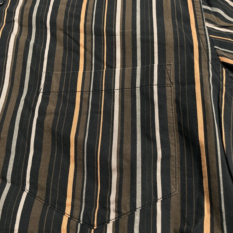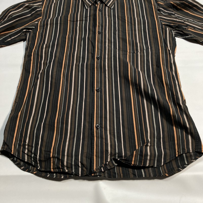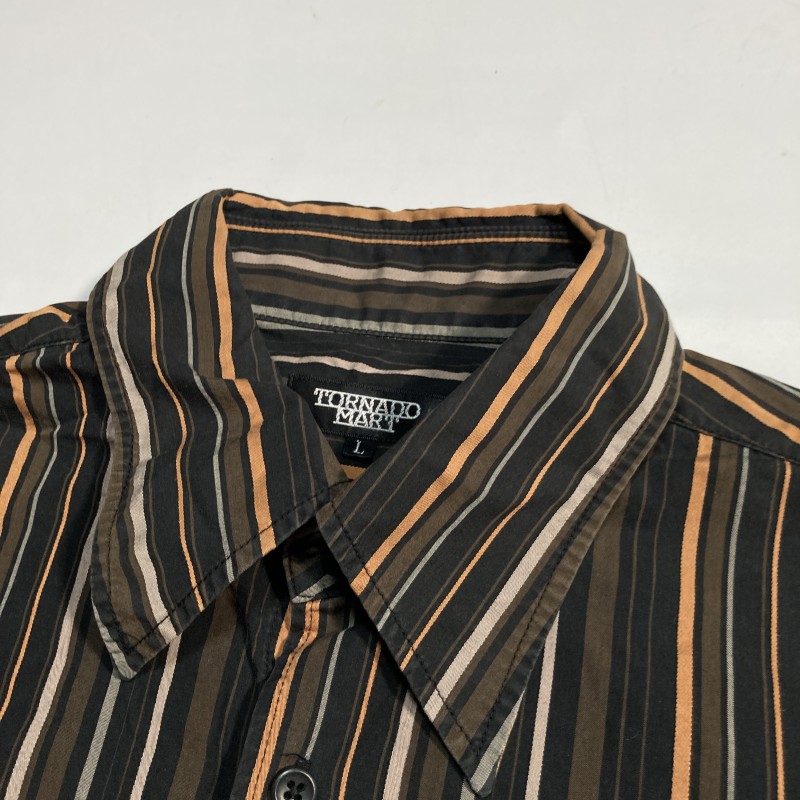 TORNADO MART★00s archive★モダン優雅★マルチストライプ アシメ間隔 長袖シャツ ダーク好配色 黒茶 L トルネードマート Y2Kヴィンテージ 收藏