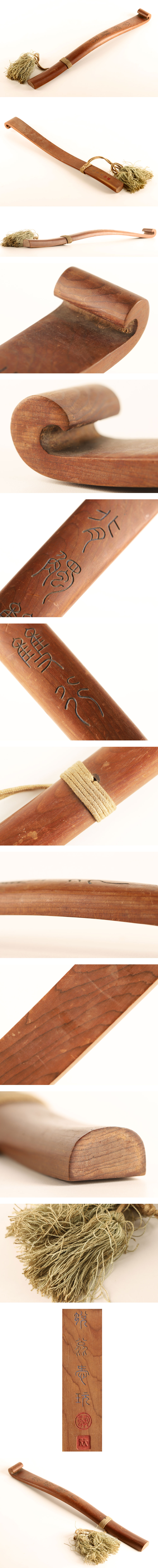 【琴》送料無料 時代 木製 漢詩彫 煎茶如意 長35.5cm DK523 收藏