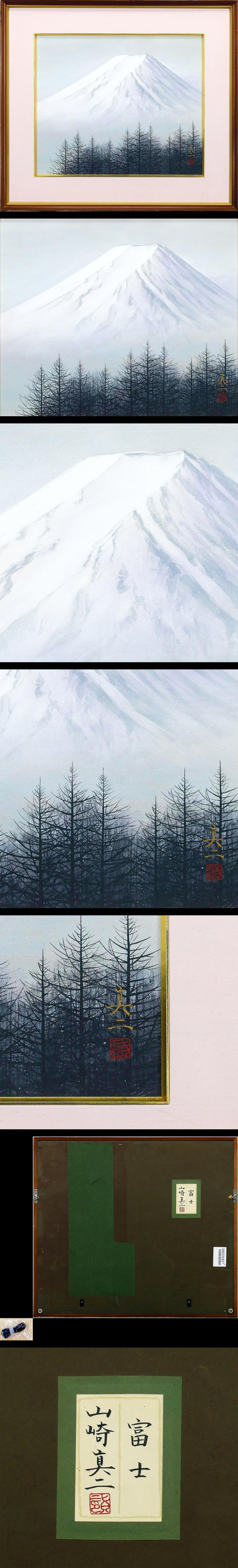 【真作】【WISH】山崎真二「富士」日本画 8号 金落款 共シール ◆冬の空にそびえる雪の富士 〇日本美術院院友 夭折の画家 #26023183 收藏