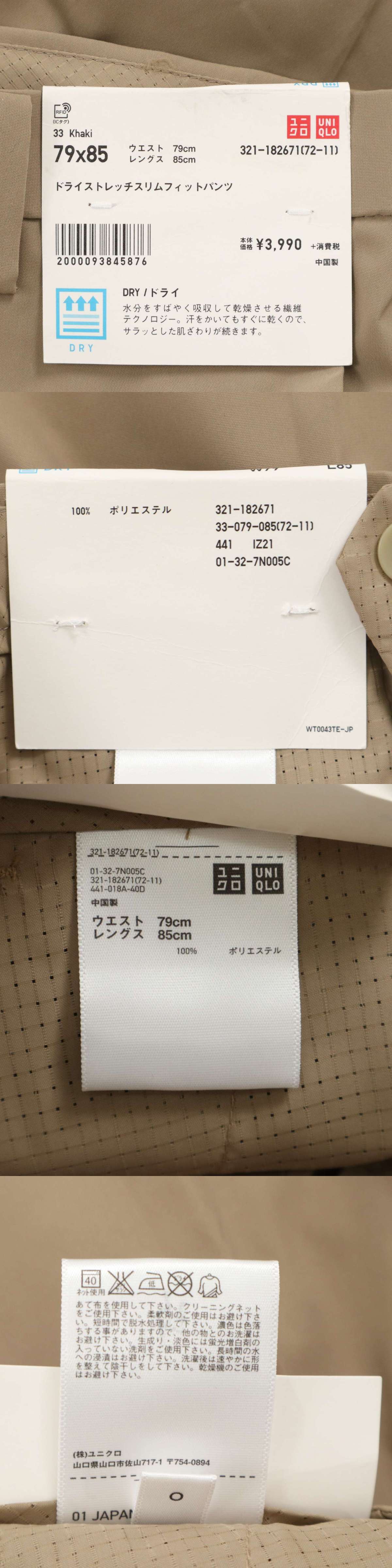 【新品 未使用】 UNIQLO ユニクロ 春夏 ドライ★ ストレッチ スリムフィット スラックス パンツ Sz.79 メンズ 收藏