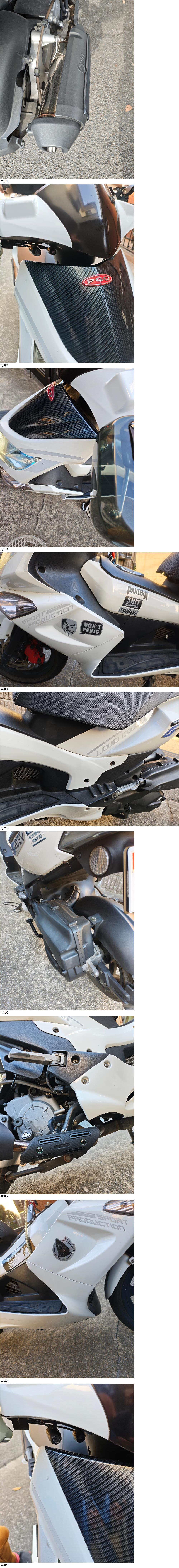 ハンドル下カウルに割れがありますが補修してあります。見落としている場所もございますのでご理解下さい。夏場に長くアイドリングしてると、マフラー変えたせいもあり、O2センサーがガスに反応してエンジンランプが付きますが、エンジン吹かすとガスが流れて消えます。ノーマルマフラーに戻せば直るか?と思います。キャリアは付きます。トップケースは他車で使う予定ではあります。ハンドルは純正タイヤサイズが市販サイズでは見つからず、後ろタイヤど同じにしたので、スクーター小径タイヤということもあり、手放し出来ません。