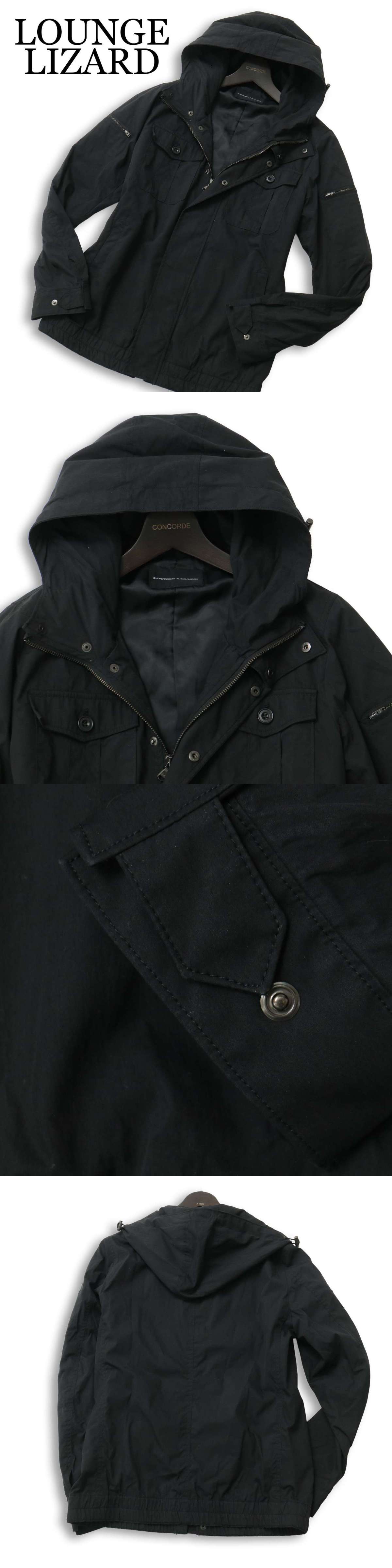 LOUNGE LIZARD ラウンジリザード 通年★ スリム ジップ フーディー ブルゾン ジャケット Sz.1 メンズ 黒 日本製 收藏