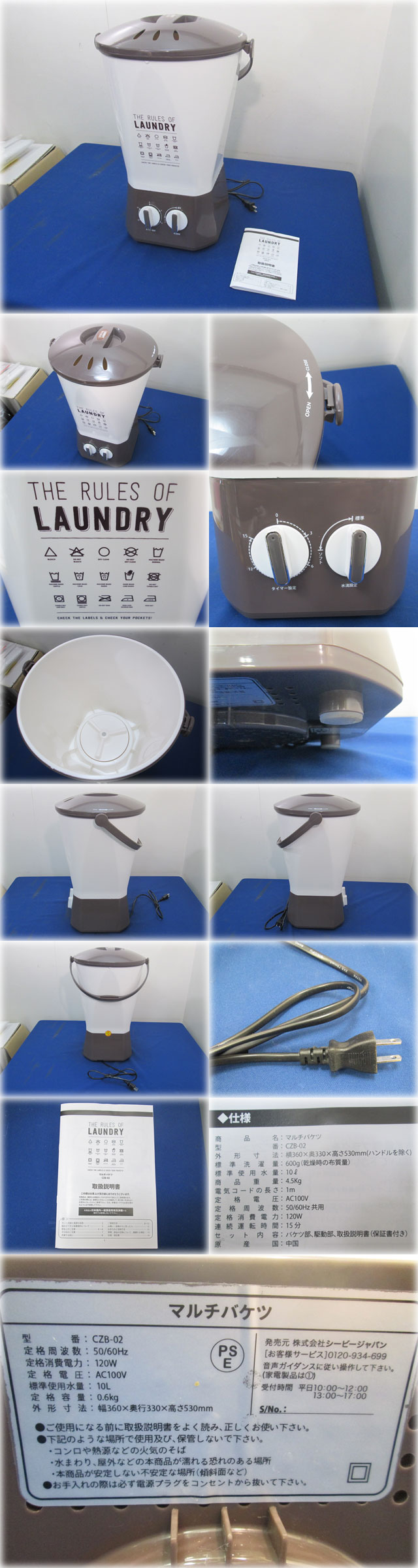 シービージャパン バケツウォッシャー マルチバケツ CZB-02 を出品いたします。 ■特徴■ 泥だらけのユニフォームや作業着、 ペット服や赤ちゃんの衣類など、 普段の洗濯とは分けて洗いたい 洗濯物に最適です。 水流とタイマーのダイヤルが 2つだけなので操作も簡単 お洗濯が終わったら、 バケツ部を持ち上げて 手動で排水して完了です。 ■仕様■