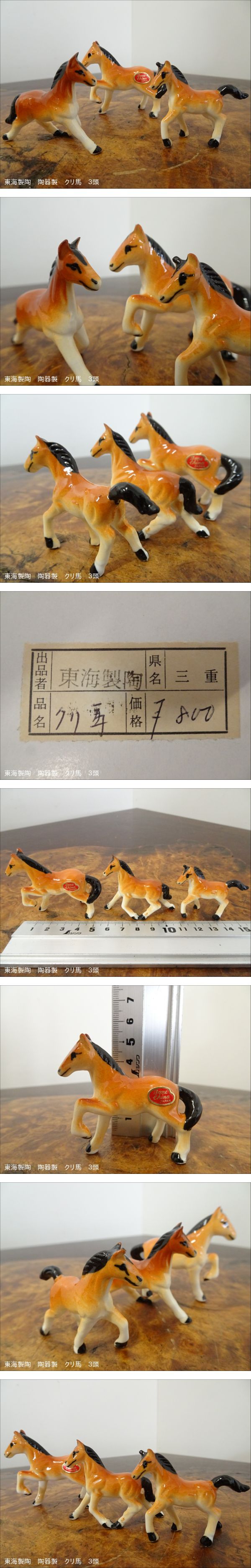 希少 昭和中期 当時物 三重 東海製陶 陶器製 クリ馬 栗毛馬 ミニチュア フィギュリン 置物 3頭 伝統工芸 郷土玩具 | ||||||||||||||||||||||||||||