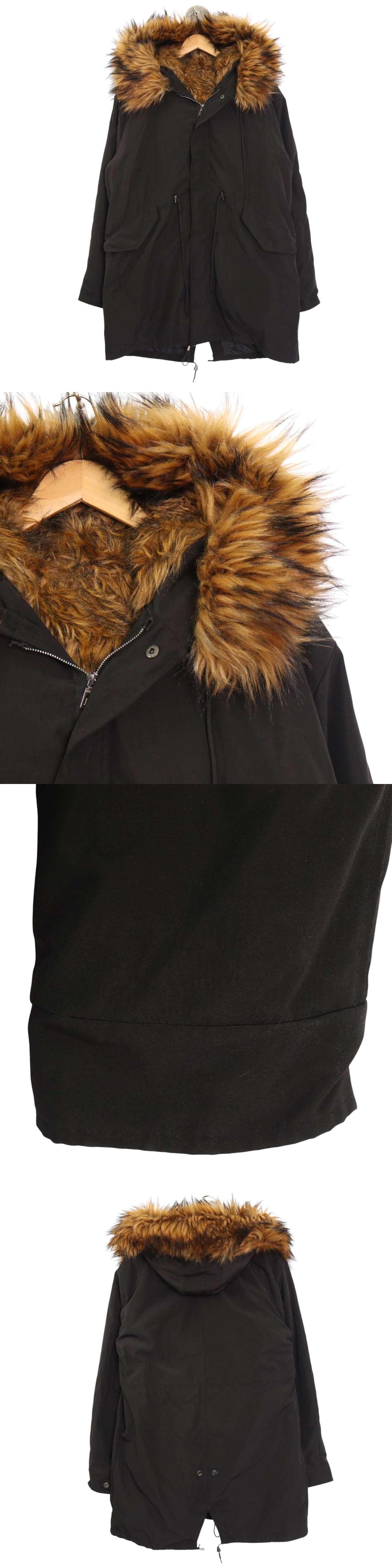 JenniferM ジェニファーム 秋冬 フェイク ファー★ 裏ボア ミリタリー モッズ コート Sz.3XL メンズ 黒 大きいサイズ 特大 收藏