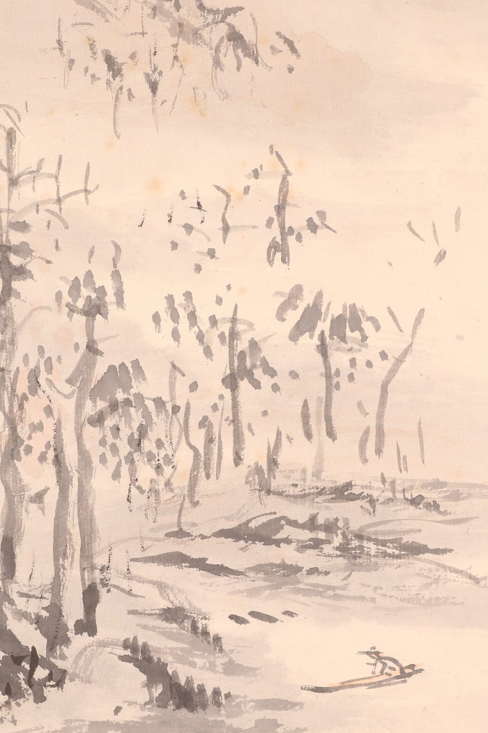 【模写】【伝来】am8041〈橋本関雪〉山水図 共箱 中国・呉昌碩と交流 竹内栖鳳師事 兵庫の人 收藏