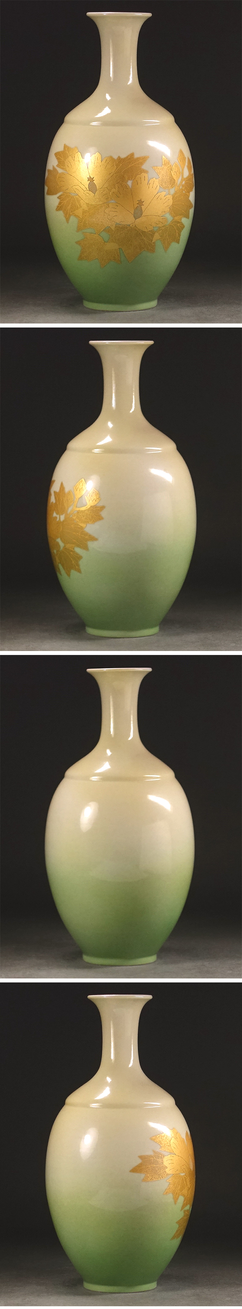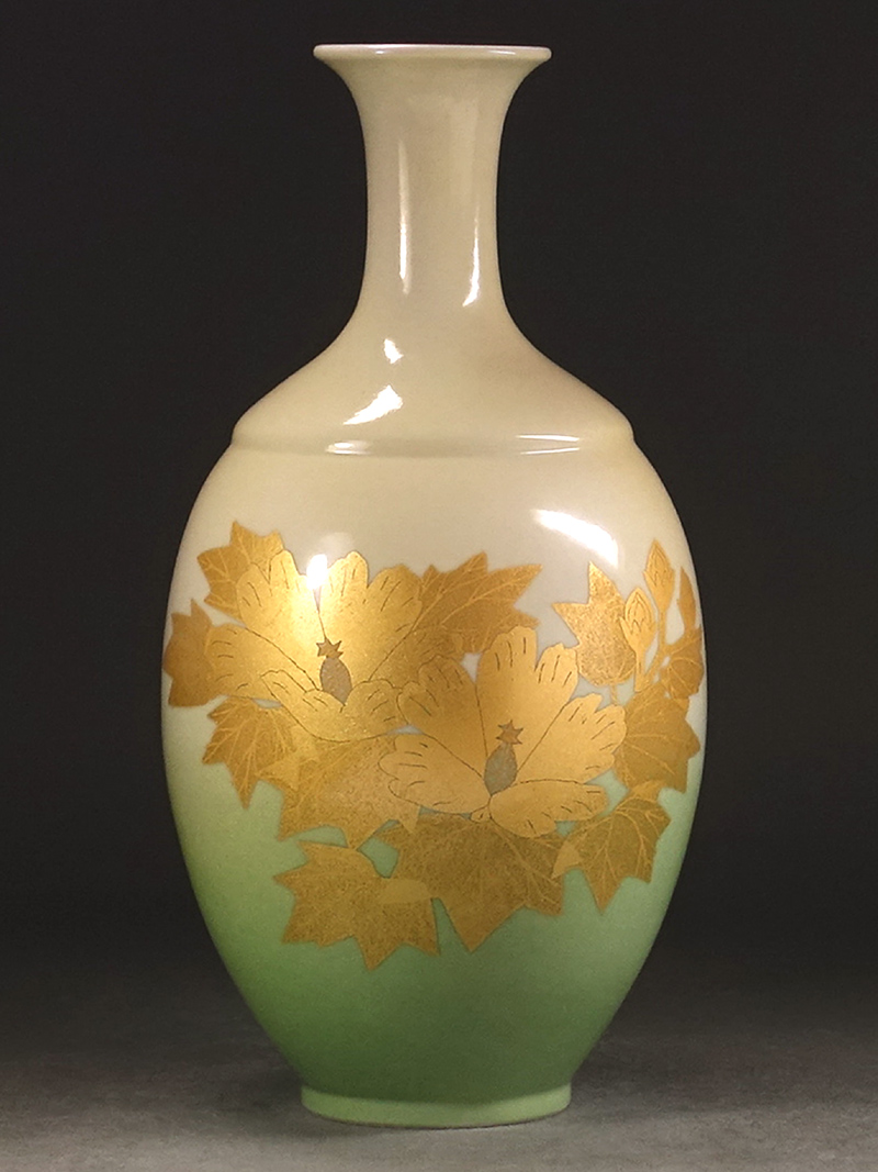 ∇花∇人間国宝【吉田美統】作 釉裏金彩芙蓉文花瓶 高さ25cm 共箱付 琳派に通じる絢爛優美な意匠 收藏