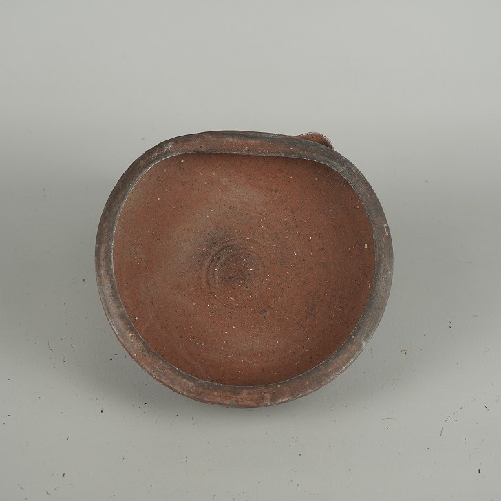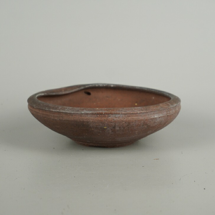 【中古】盆栽鉢 落款なし 小型 長辺 約 14.5cm 丸鉢 口付 穴無 泥物 現品 中古鉢 收藏