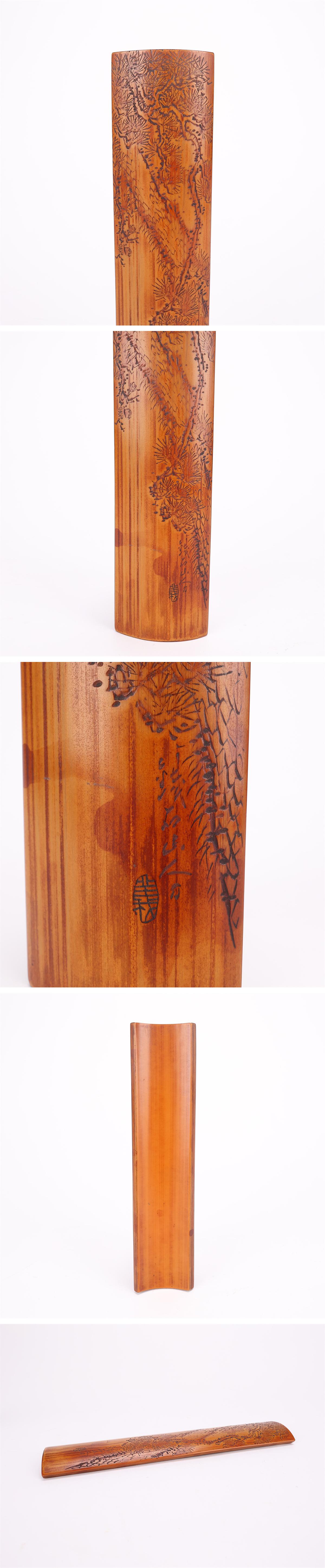 【吉】MB863 時代 【鉄石山人 刻】 竹製 茶合 茶量 長21㎝/袋付 美品Sg! 收藏