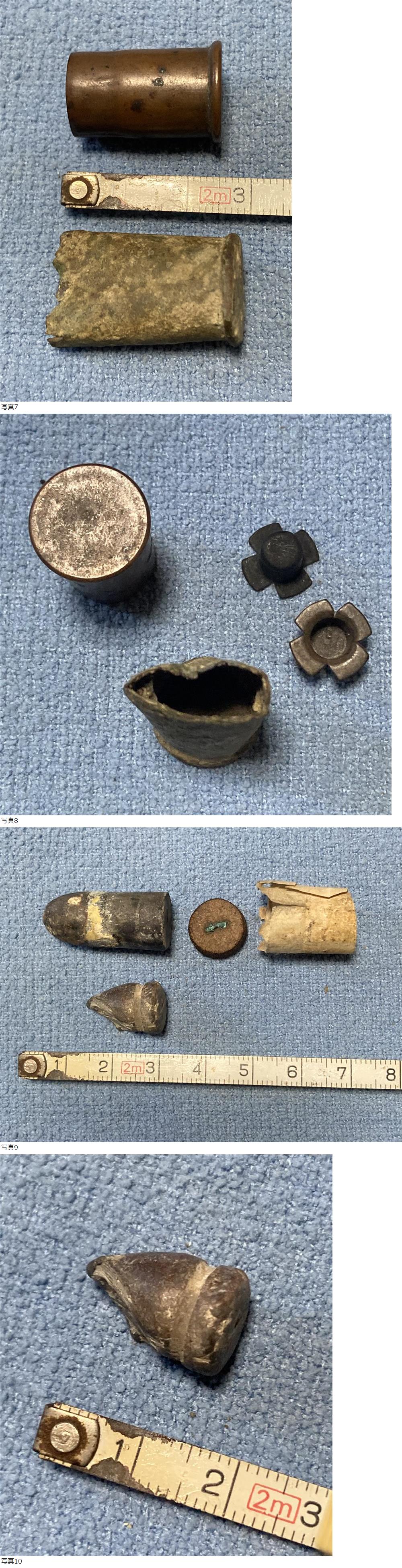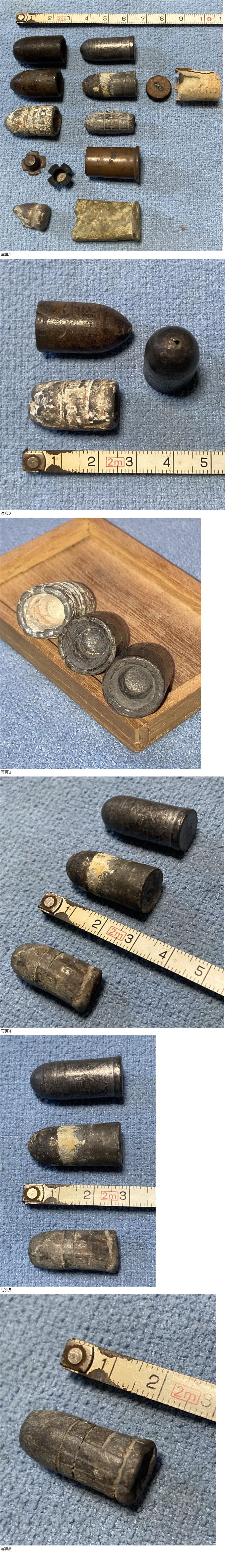 幕末〜西南戦争期に使用された銃弾。戦場採取品では無く、長期間に渡り各地の骨董市、店舗、廃業した銃砲店で集めた物になります。画像2、3枚目がエンフィールド弾2発、スナイドル弾。4、5枚目の上からレカルツ弾、マンソー弾、不明弾。6枚目は不明弾ですがシャスポー弾の可能性も考えられますがよくわかりません。7枚目の薬莢はスペンサー、10枚目は針打式の9粍弾です。ノークレームノーリターンでお願いします。