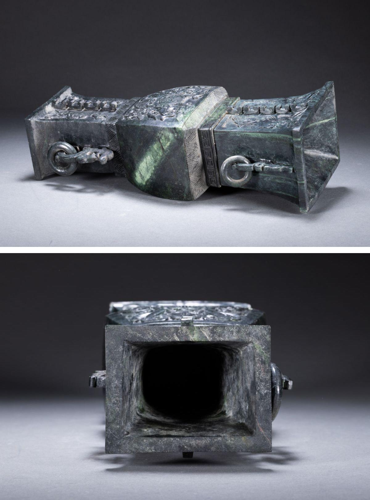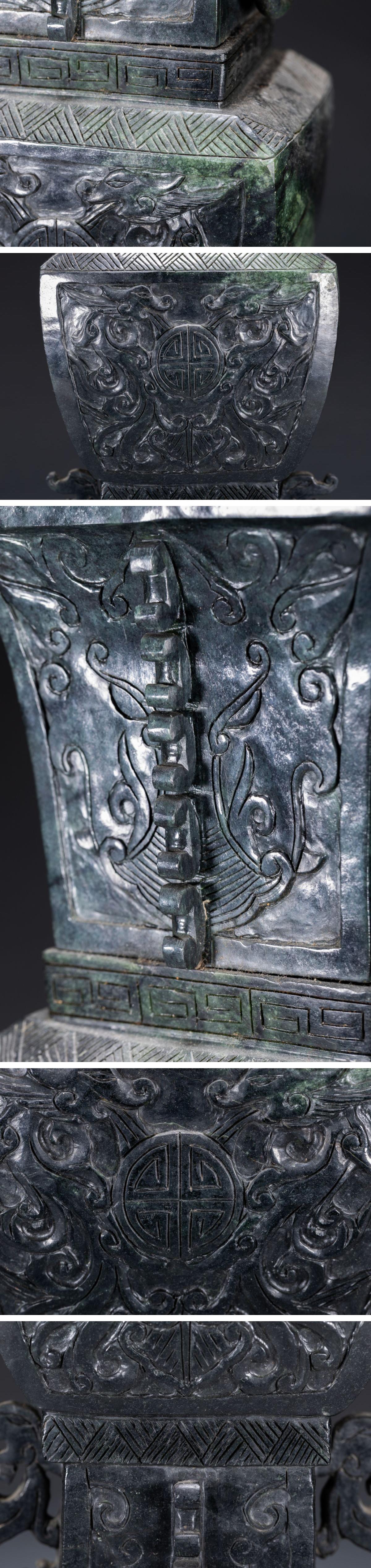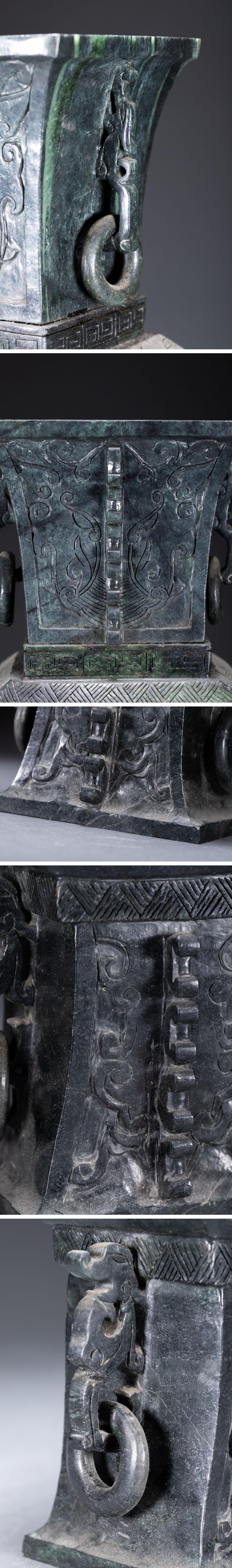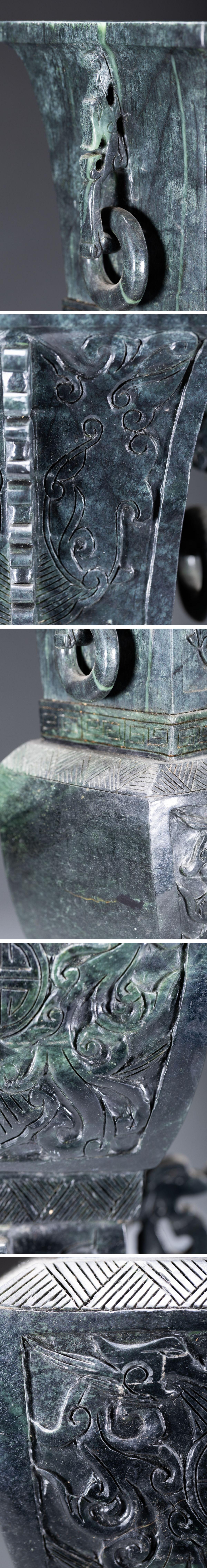 【清】関西某オークション購入 中国・時代物 天然碧玉 龍紋環耳尊一双9kg 極細工 古置物 古擺件 中国古美術7L11-24S7 收藏
