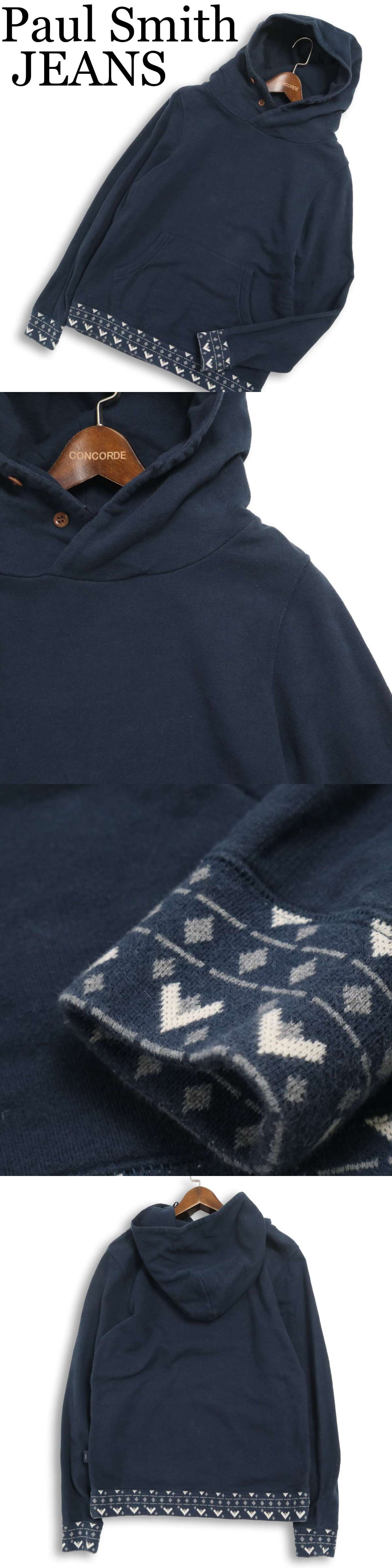Paul Smith JEANS ポールスミス ジーンズ 切替デザイン★ スウェット プルオーバー パーカー Sz.S メンズ ネイビー 收藏