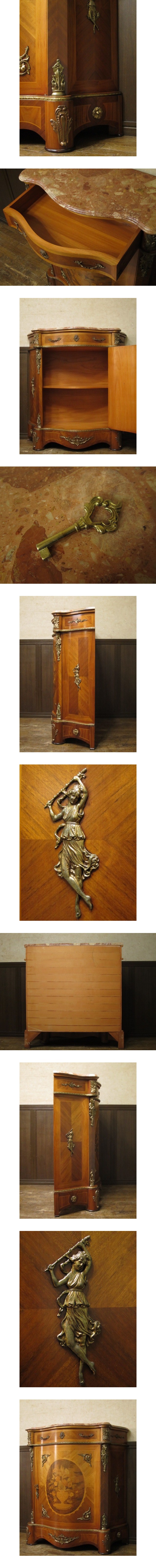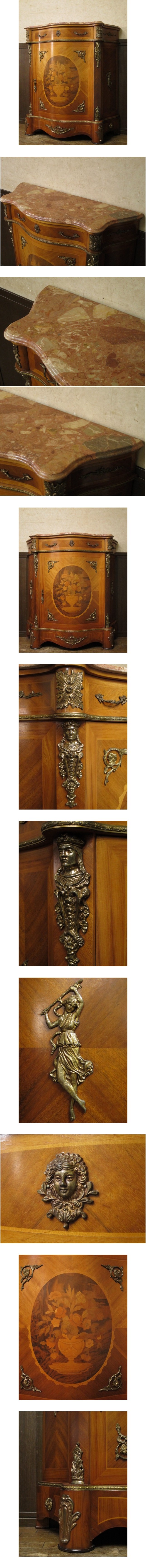 最高級 イタリア製 天板大理石 ルイ15世様式 象嵌 ブロンズ装飾 コンソール キャビネット 鍵付き/コモード/サイドボード/ロココ/バロッ 收藏