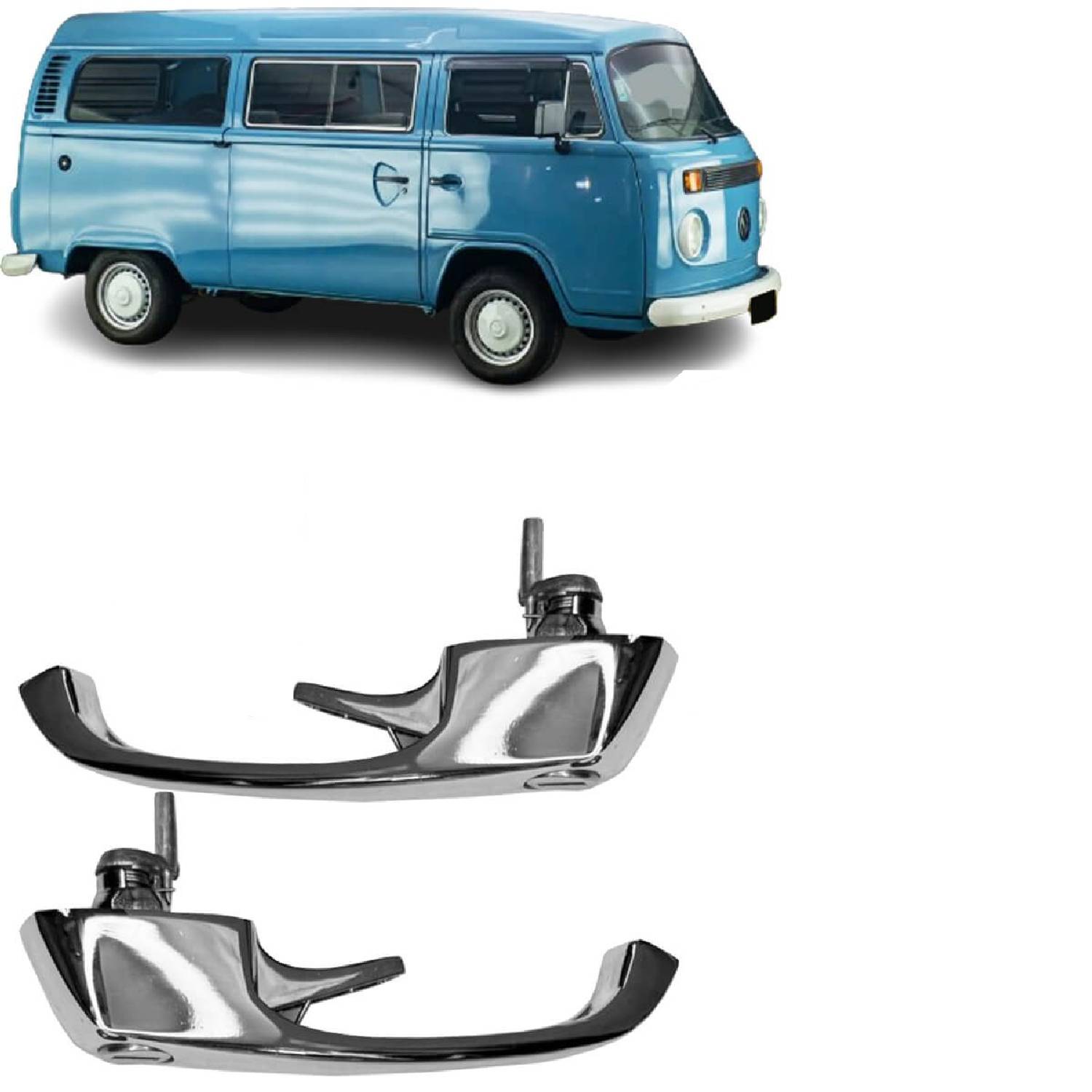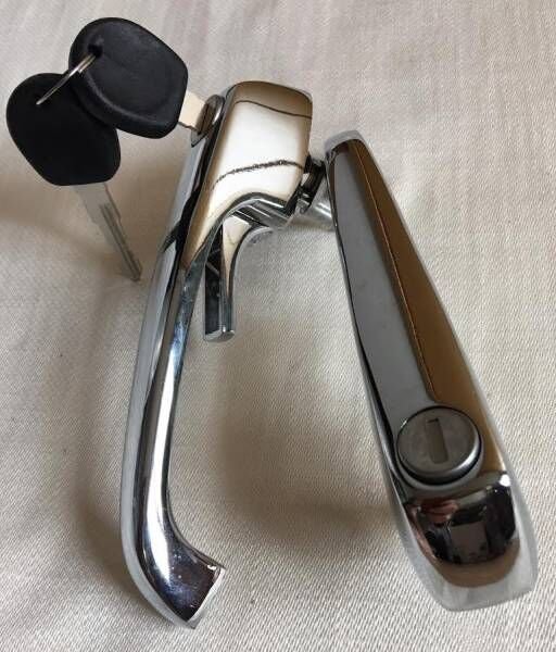 2個セット ペア 外装 アウター ドア ハンドル フロント サイド ロック クローム メッキ スチール キー2個付き VW T2 バス コンビ トランスポーター 1974- 181 LT 28-35 28-50 T3
