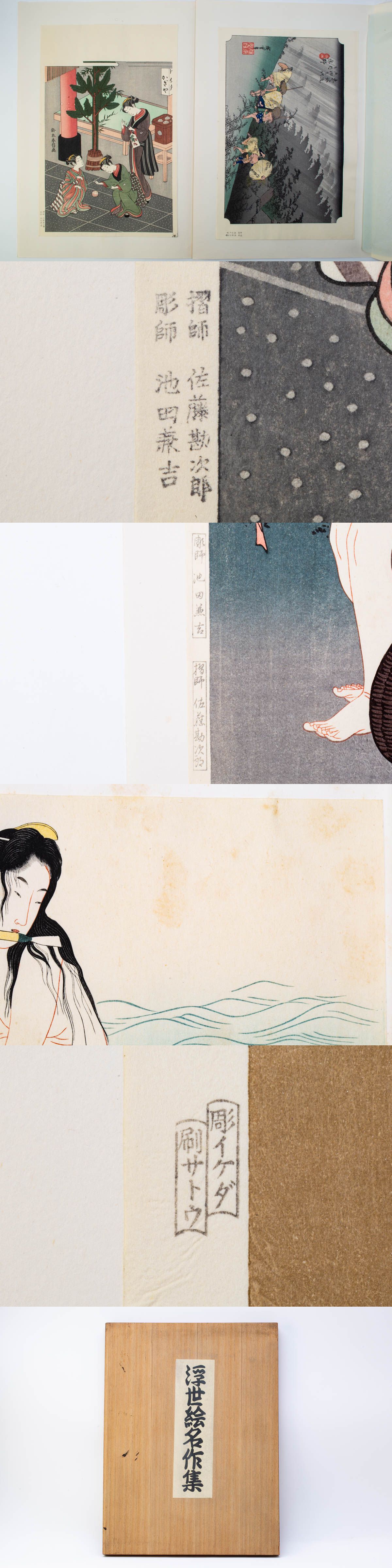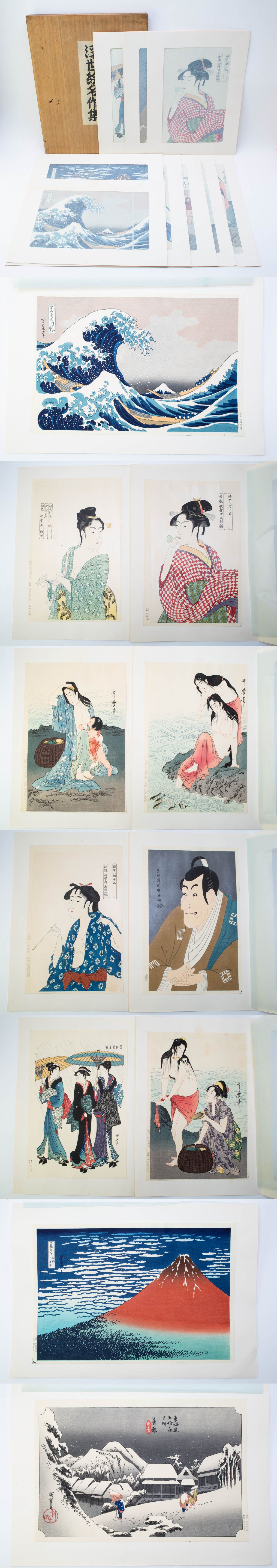 浮世絵名作集 彫師 池田兼吉 摺師 佐藤勘次郎 手摺木版画 葛飾北斎 喜多川歌麿 東洲斎写楽 鳥居清長 歌川広重 鈴木春信 木箱付 13点 #39309 收藏