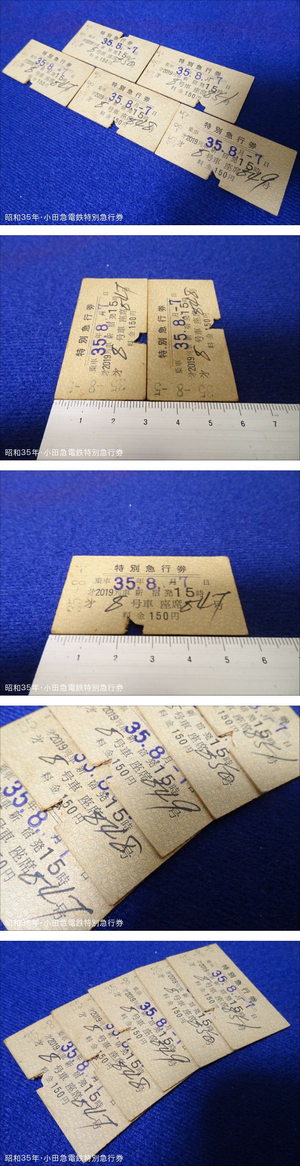 昭和35年 小田急電鉄 新宿発 特別急行券 連番5枚 硬券 切符 | ||||||||||||||||||