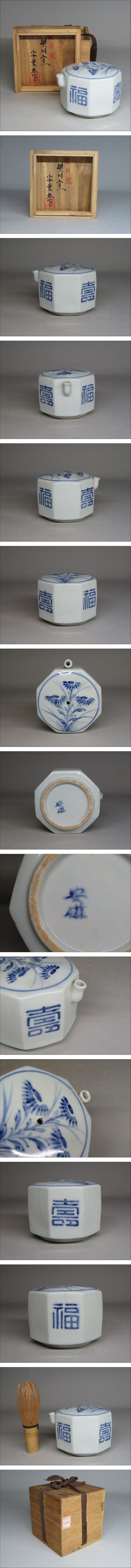 【李朝/高麗 特集出品】 焚川窯 「安東五」作 染付福寿草花紋水滴 韓国人間文化財 作家物 朝鮮美術 韓国 人間国宝 安東五 lot:20119 收藏