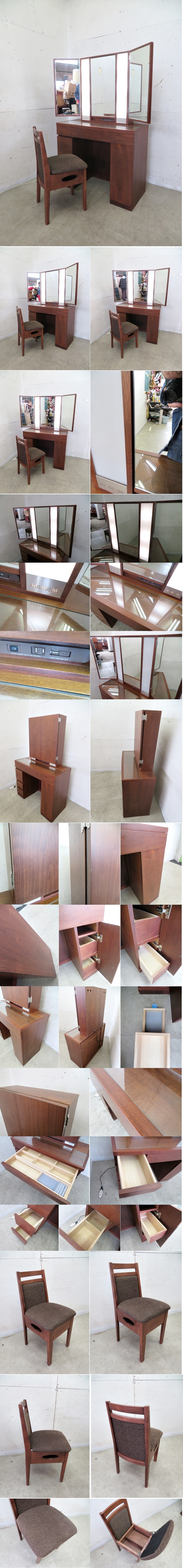 ■P164■美品■関本家具■モダンデザイン■ウォールナット■プリマ■三面鏡ドレッサー/椅子付き■女優ミラー ■LED■21.9万円 收藏